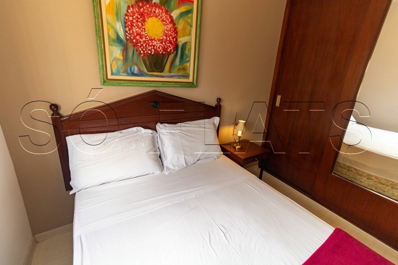 O flat há todo o conforto de ar-condicionado, tv a cabo, interfone, apoio de cozinha e Wi-Fi e o condomínio oferece piscina, sauna, academia, vaga de garagem , serviços diversos, além do restaurante Família Castro.