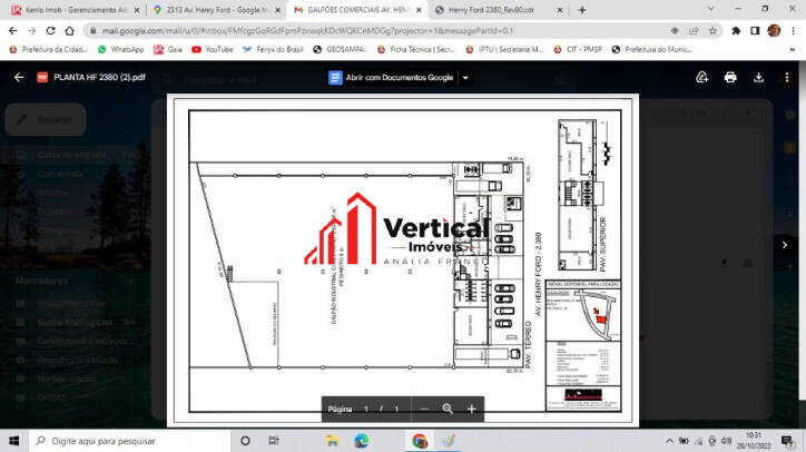 3.195,00 m² de Área ConstruídaPé direito 8mPista para 2 pontes rolantes de capacidade 20 toneladasGalpão; Mezanino; Administração / WC / Vestiários / Cozinha Guarita; WC Externo;Pé direito de 8,00m, com pista para 2 pontesrolantes de 50,00m de profundidade, por 22,00m delargura. Capacidade de 20 toneladas.Piso em concreto armado de 25 cm, acabamento liso em granilite.Cobertura metálica tipo shed com ventilação eiluminação natural.Barra lisa de 2m.Estacionamento para automóveis.Sistema de combate a incêndio.TOTAL ÁREA DO TERRENO: 4.050,00 m