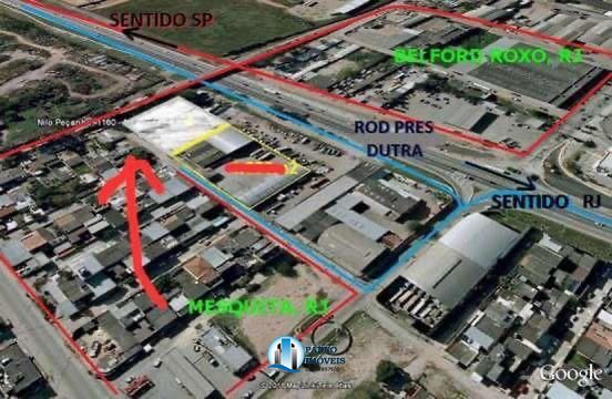 900 metros de galpão. Mais escritório e vestiário com 4 salas, fica na Dutra sentido rio, entrada do município de Mesquita porém colado a Rodovia Dutra. Possui cabine da polícia militar na porta.