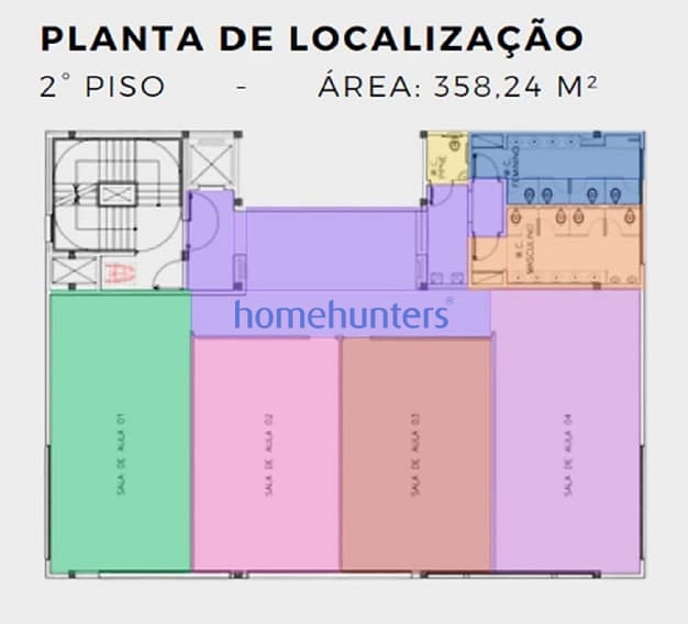 - Todos os andares estão equipados com Banheiros Masculino/Feminino e PNE