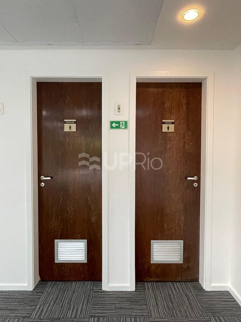 2 banheiros e 1 copa em cada pavimento, totalizando até 8 sanitários e 4 copas entre os pisos