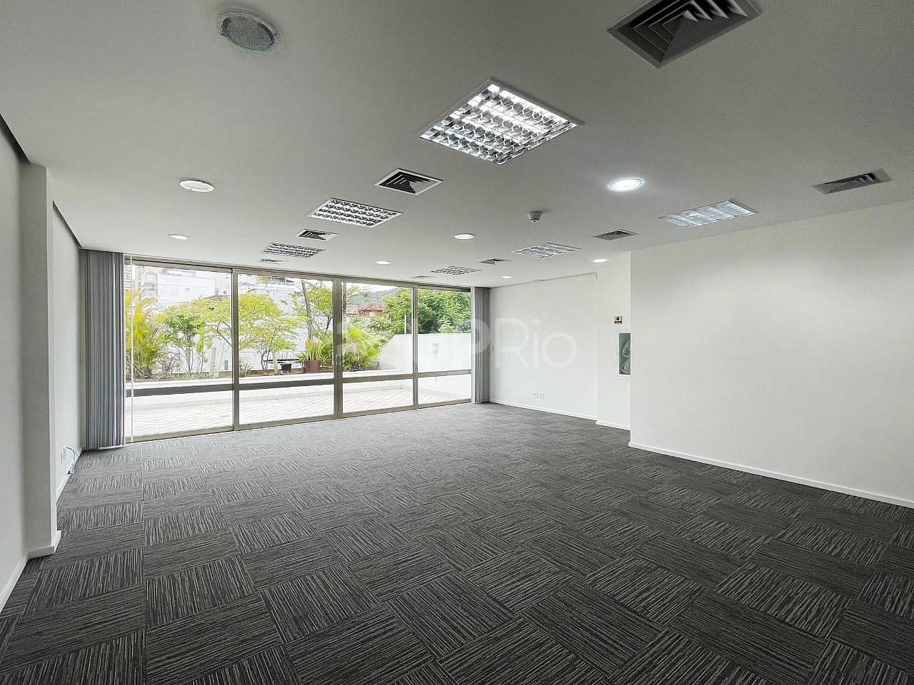 Acabamentos refinados, combinando piso em carpete e ambientes bem iluminados