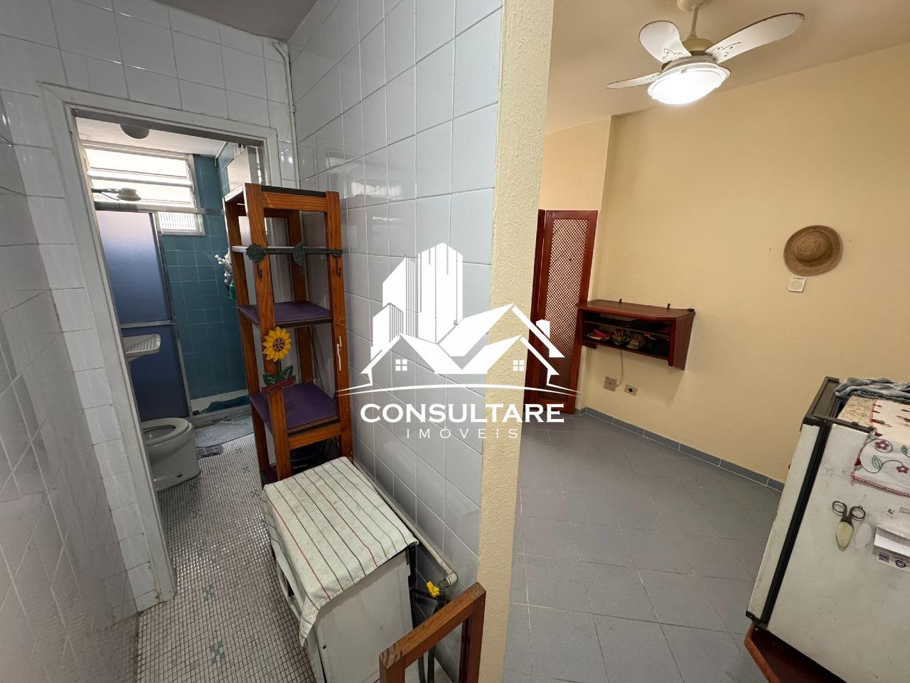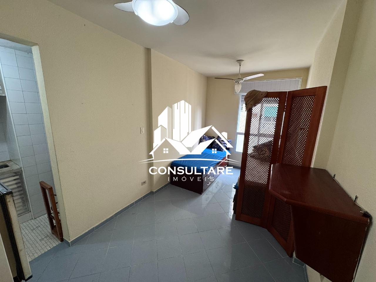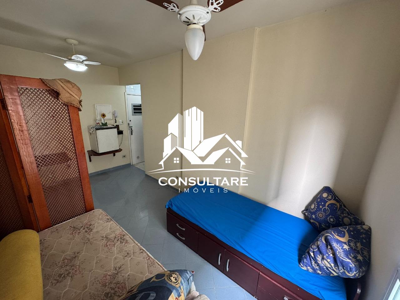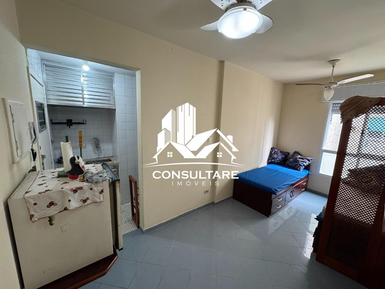 Kitnet residencial com 25 m² de área privativa, em prédio de frente para a orla da praia, no tradicional Bairro Aparecida. A unidade possui posição de fundos, garantindo maior tranquilidade