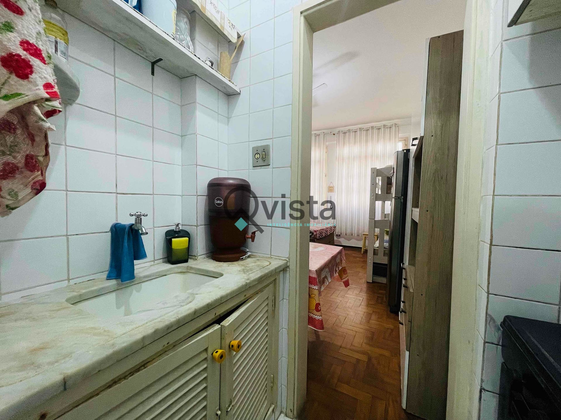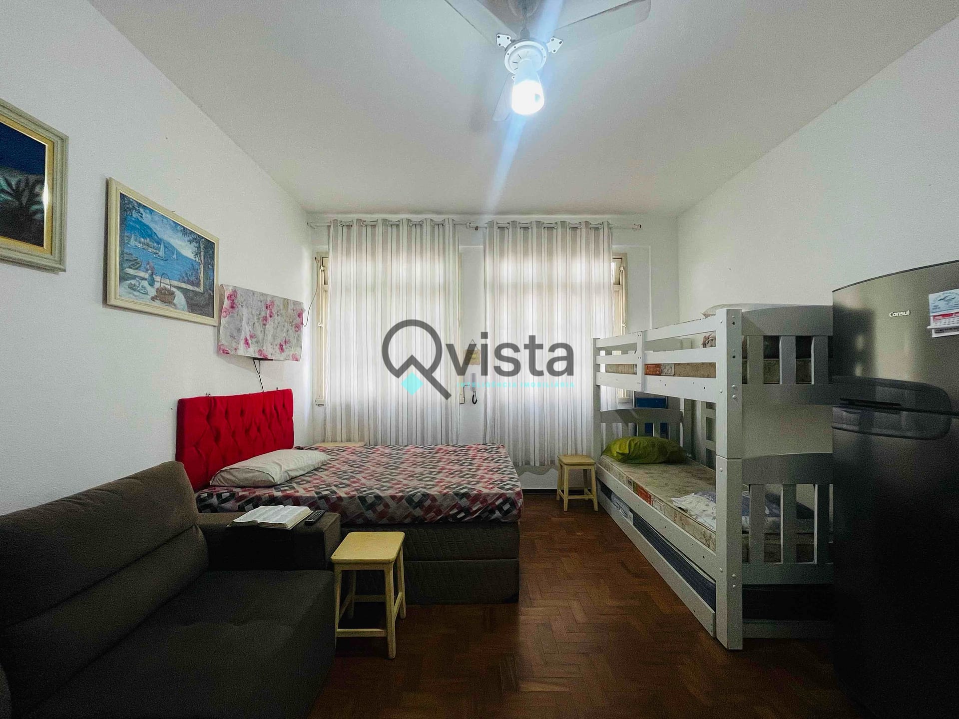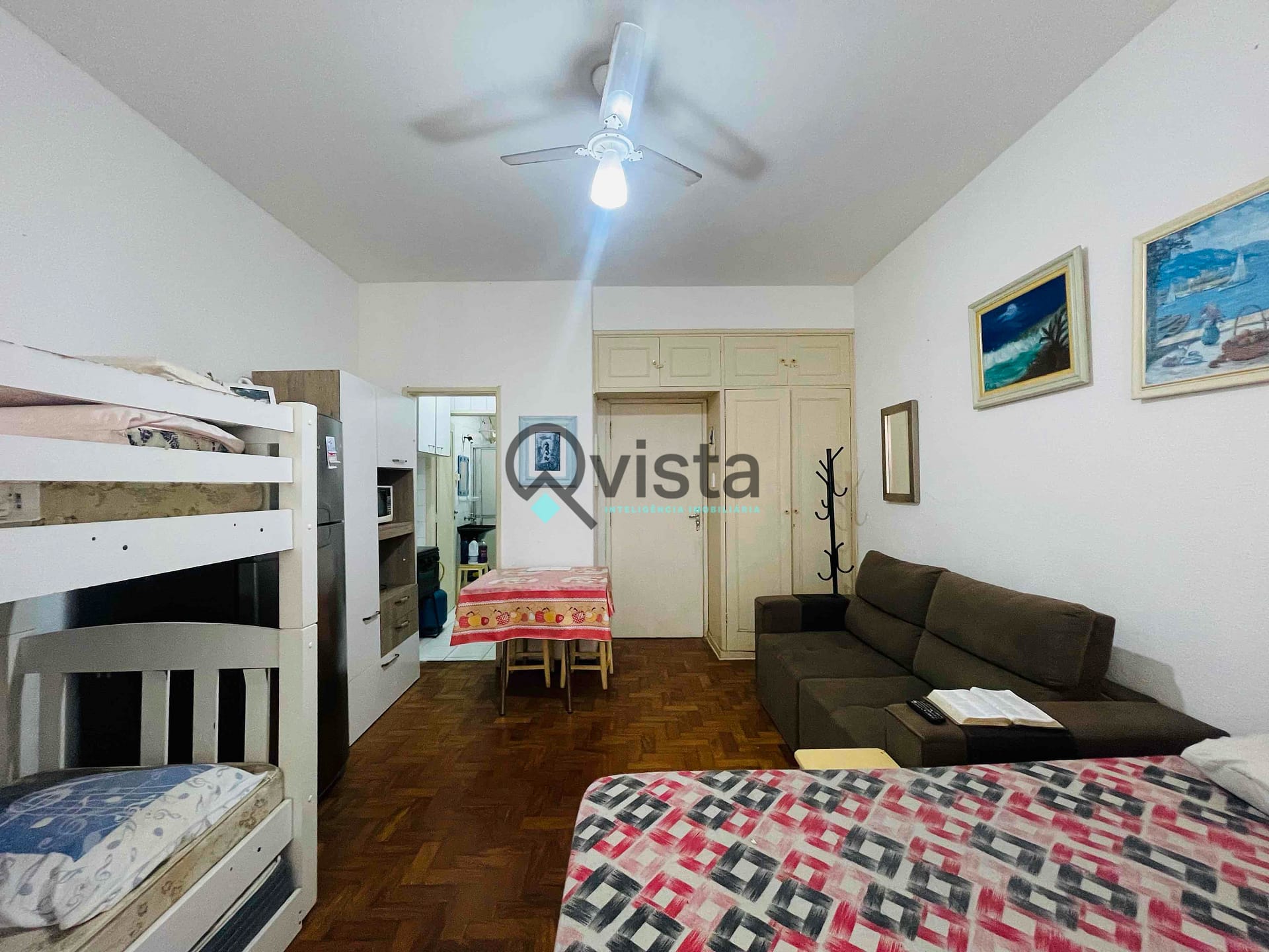Kitnet 1 Dormitorio, 1 Quadra do mar à venda na praia das Pitangueiras, centro do Guarujá, Confira!