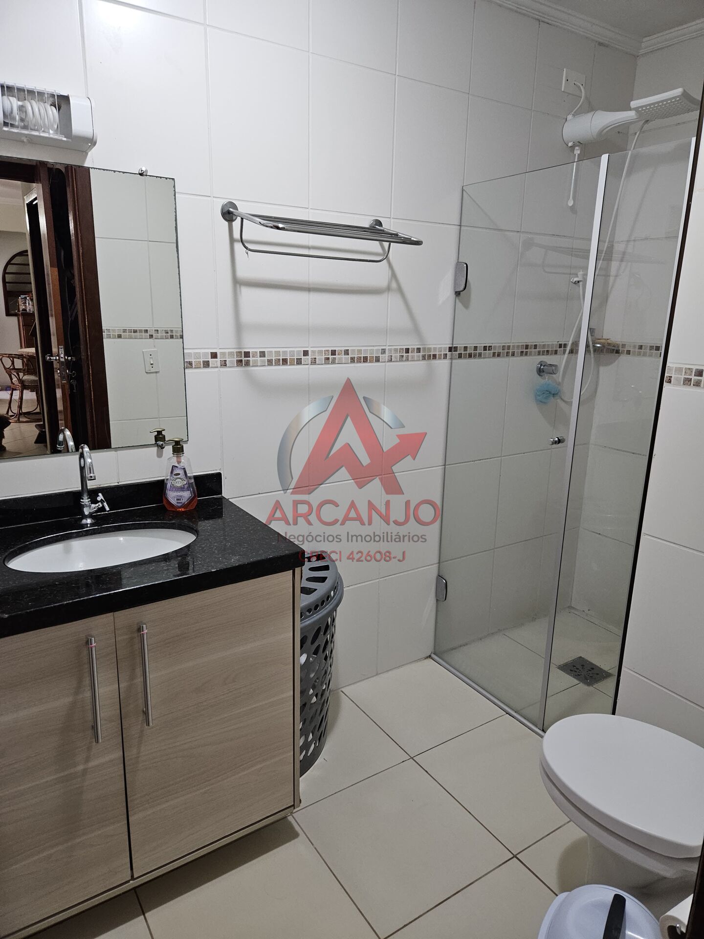 ️01 banheiro social com gabinete e box de vidro