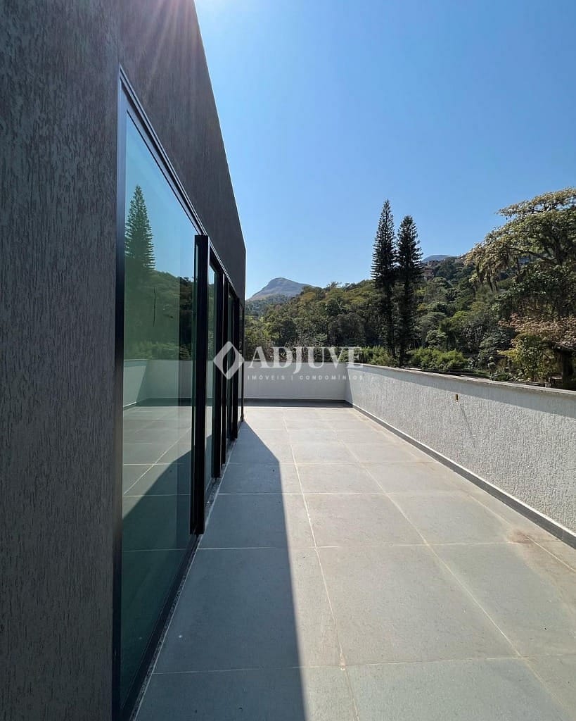 Ampla cobertura duplex composta por sala com cozinha integrada, 03 quartos sendo 02 suítes, varanda e terraço. Possui 02 vagas de garagem, área gourmet e salão de jogos. Comércio próximo, 15 minutos do Centro e Itaipava.