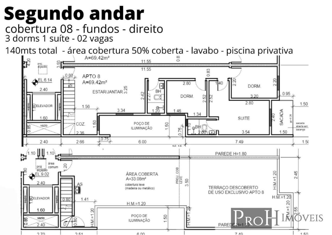 Cobertura 3 dormitórios sendo 1 suíte e piscina privada – R$ 799.000,00