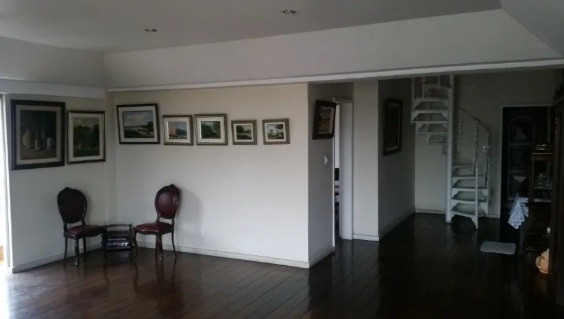 Salão e living espelhados com 72 m² em tábuas corridas ;2 varandas com jardineiras; 1 suíte com armários embutidos ; grande copa- cozinha com armários e fogão embutido; lavanderia e dependências completas para empregados.