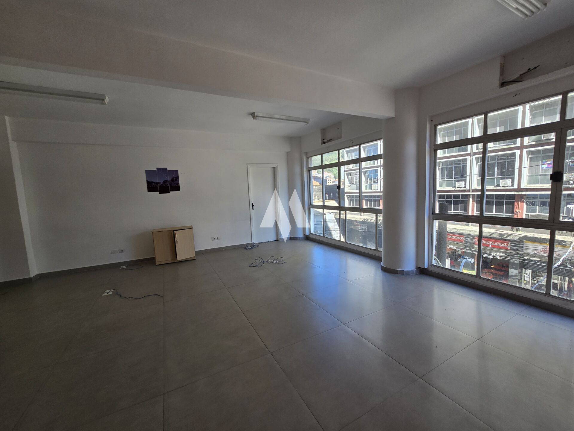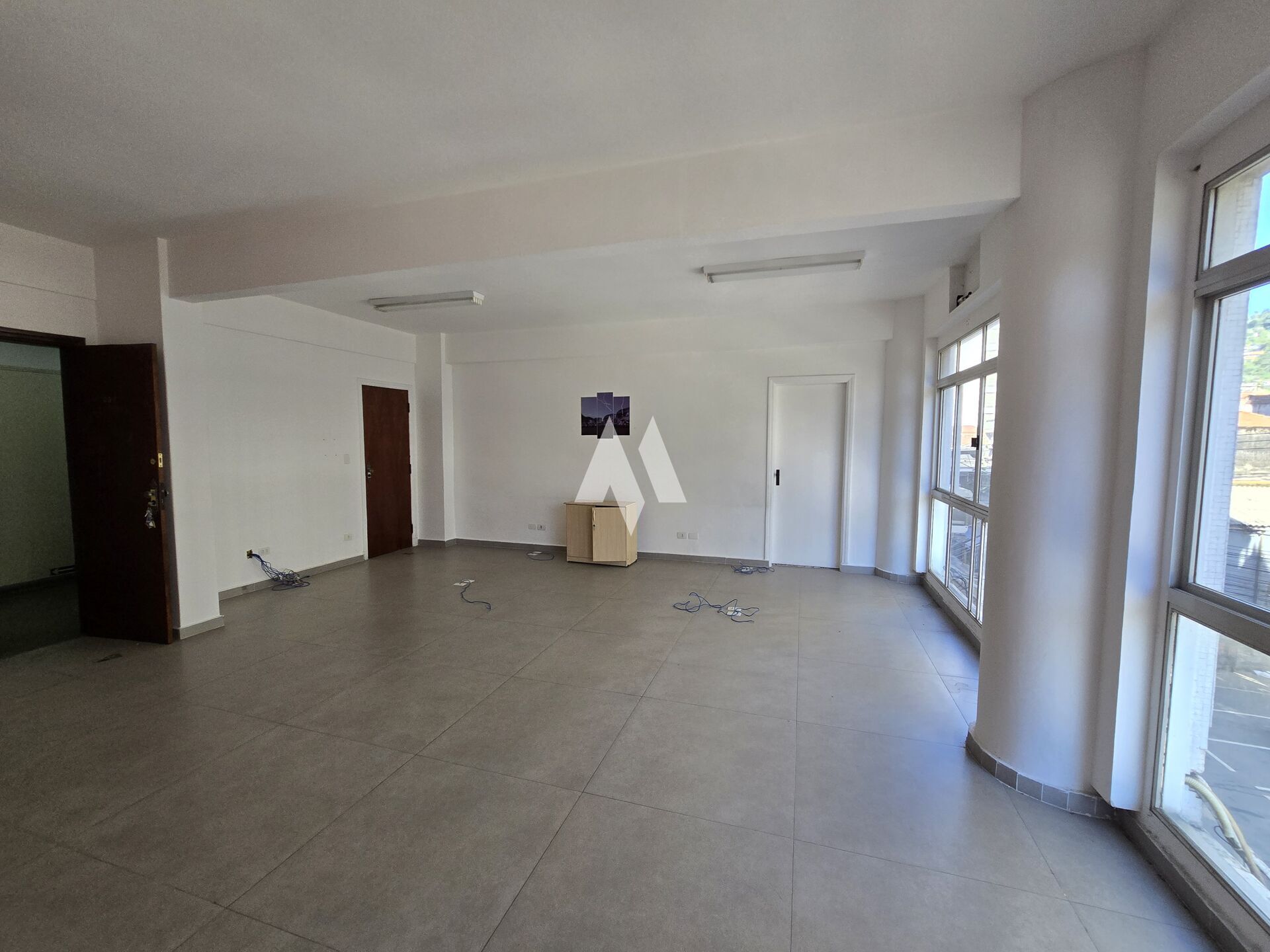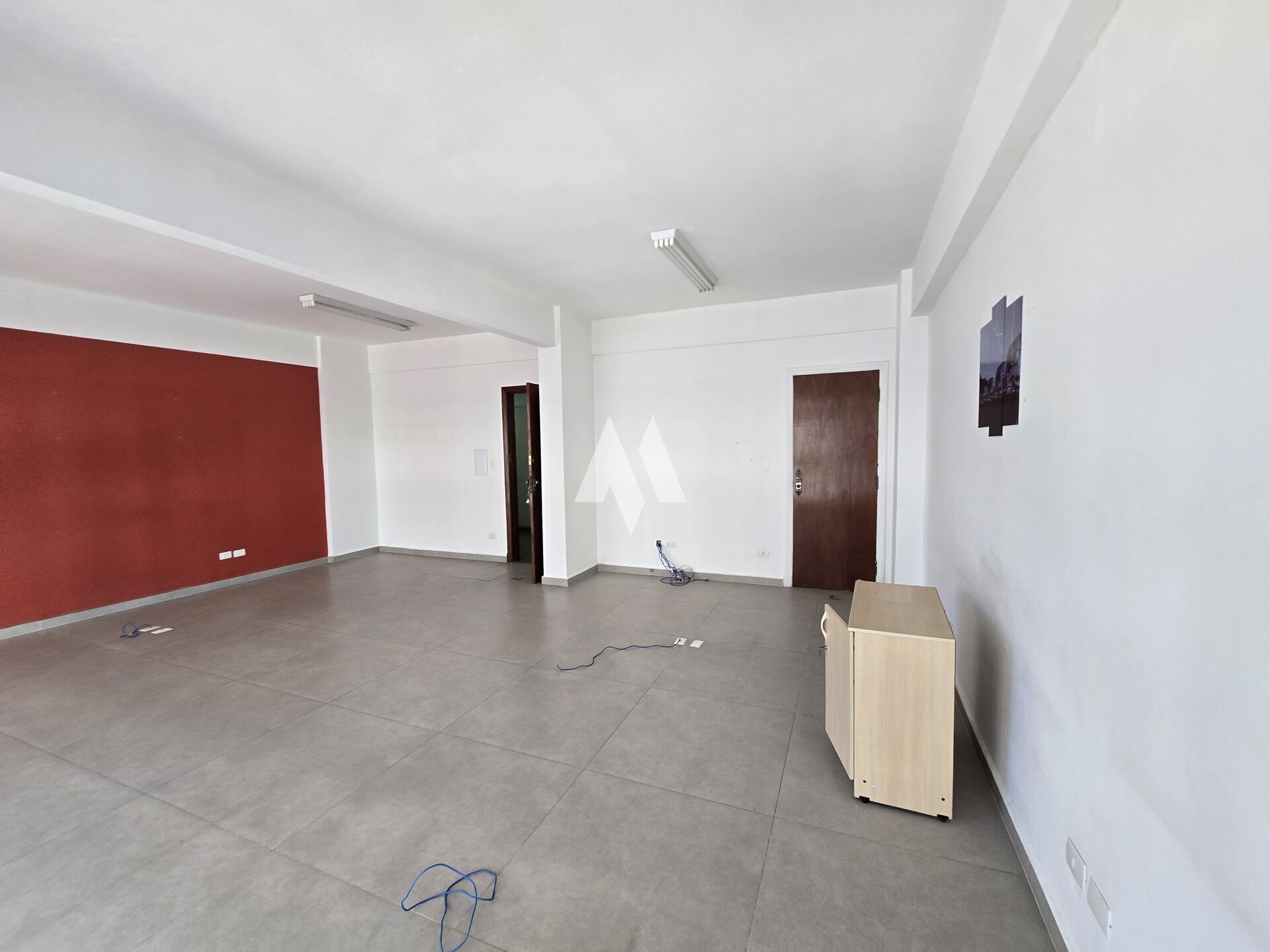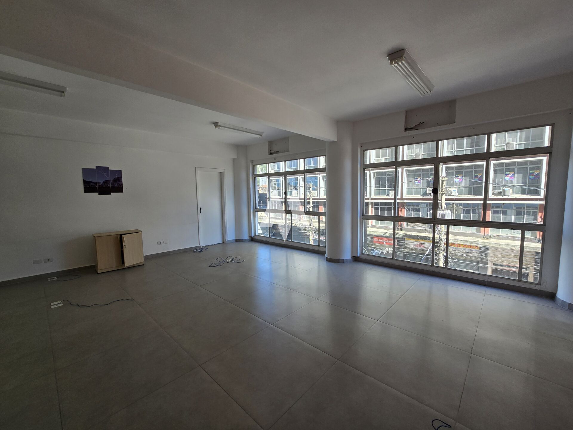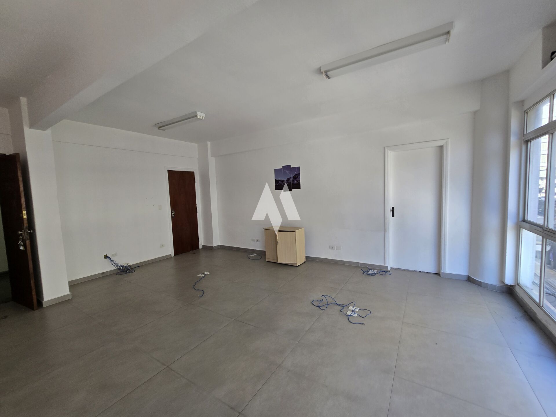 Salas entregues reformadas, com piso em porcelanato, iluminação pronta, paredes pintadas