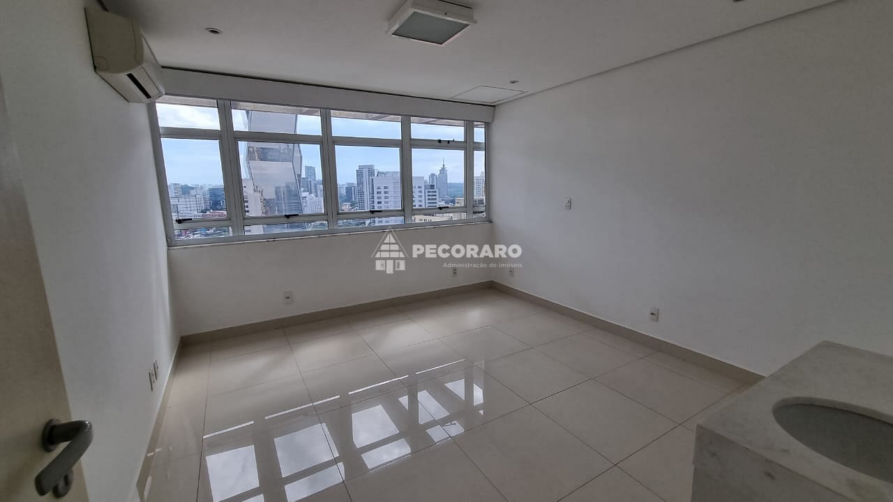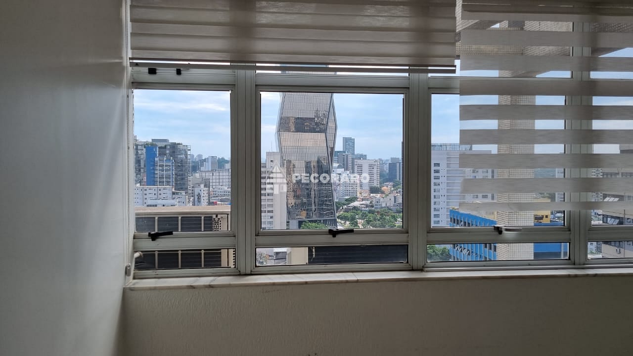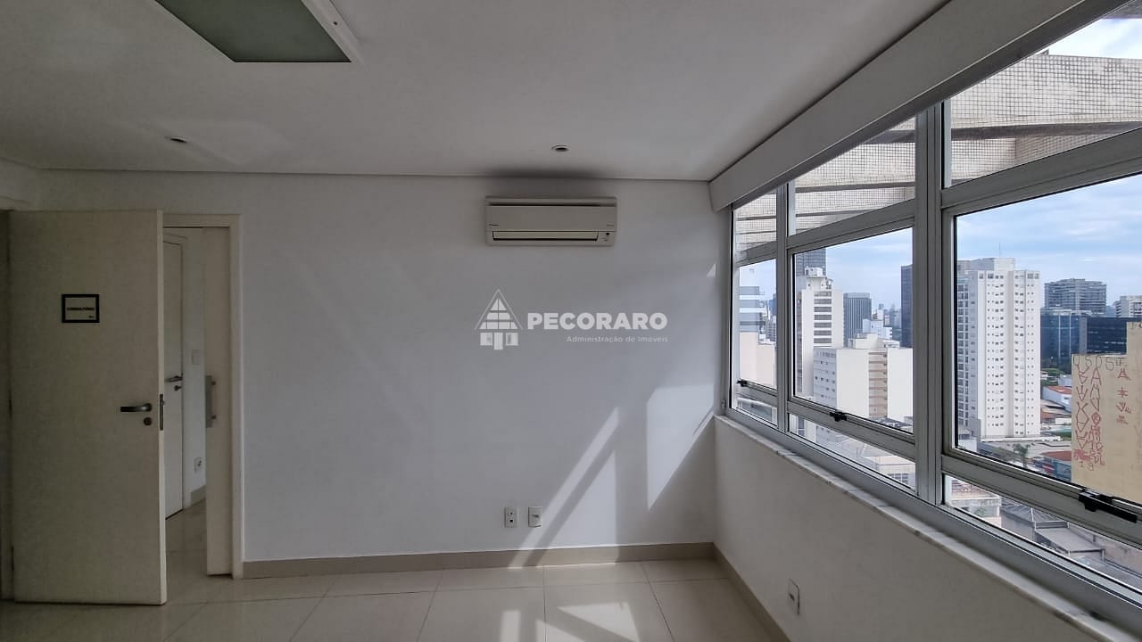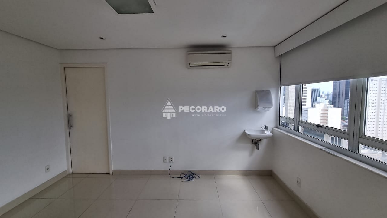 Localizada em um andar alto, esta sala comercial oferece uma vista privilegiada da região de Pinheiros. Seu piso de porcelanato adiciona um toque de sofisticação ao ambiente, e a central de ar condicionado garante um ambiente agradável em todas as estações do ano.