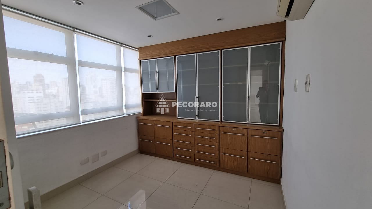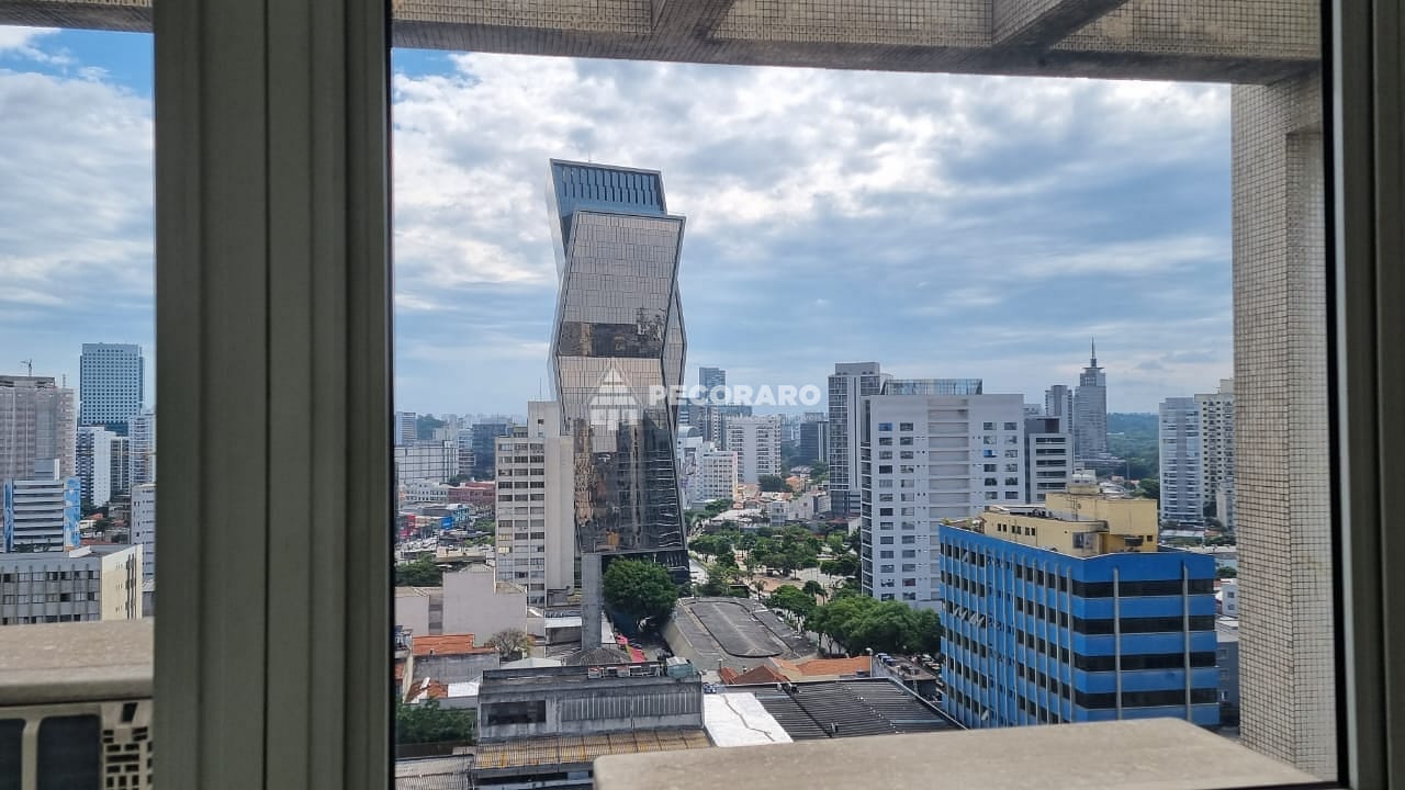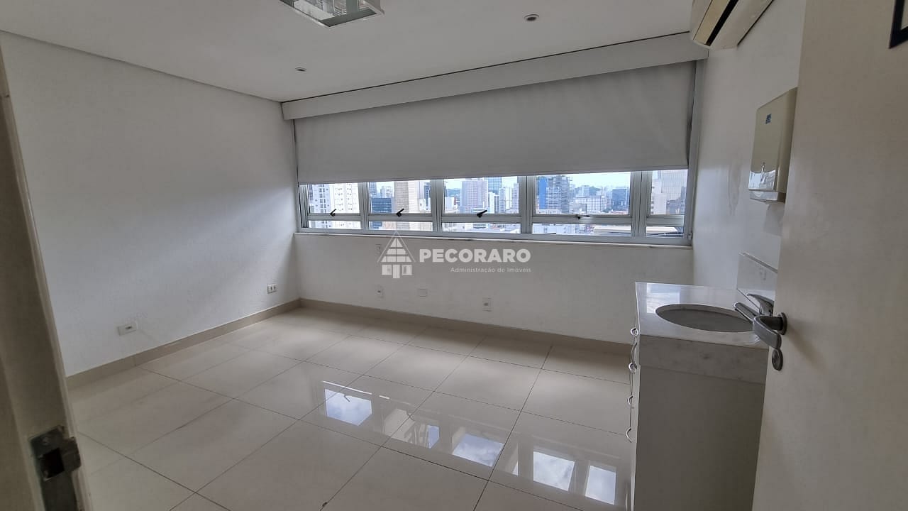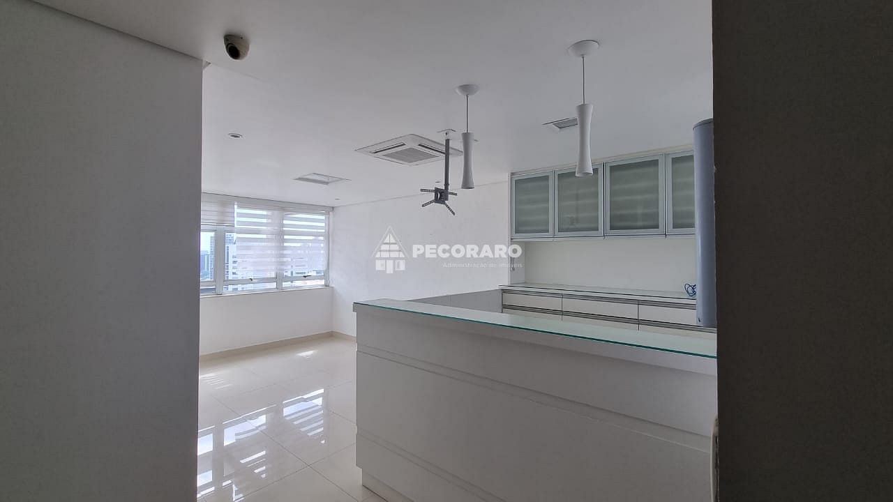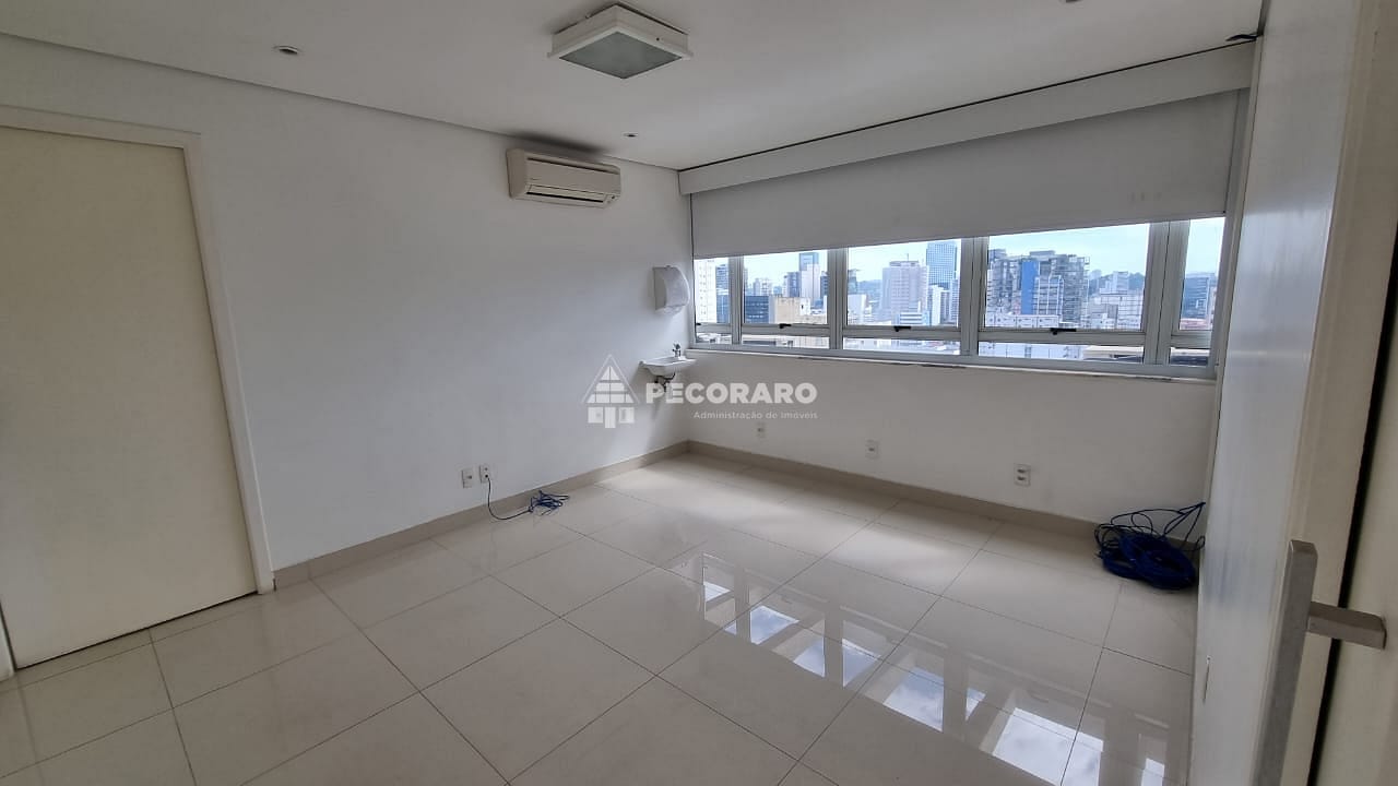 Localizada em um andar alto, esta sala comercial oferece uma vista privilegiada da região de Pinheiros. Seu piso de porcelanato adiciona um toque de sofisticação ao ambiente, e a central de ar condicionado garante um ambiente agradável em todas as estações do ano.