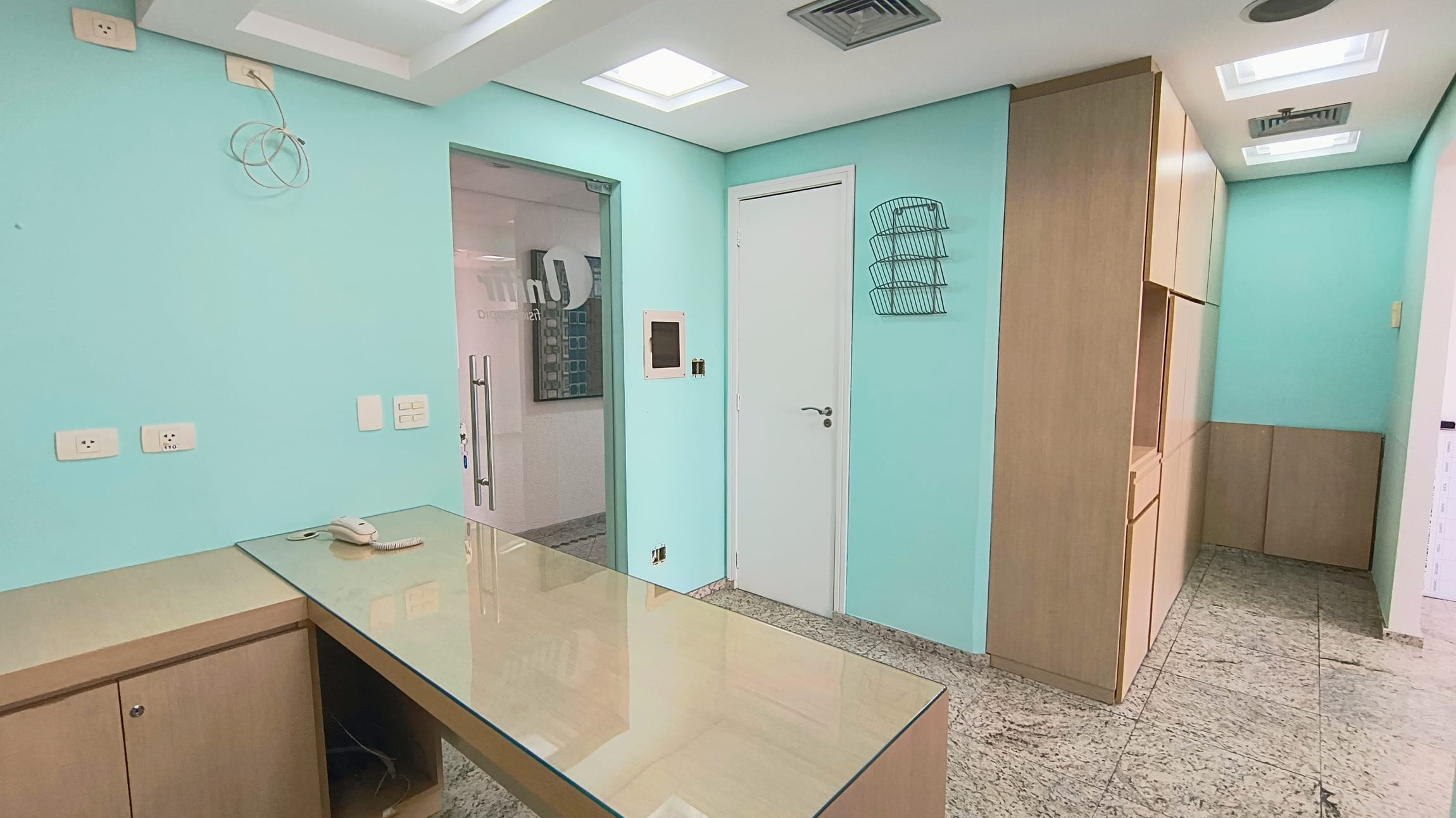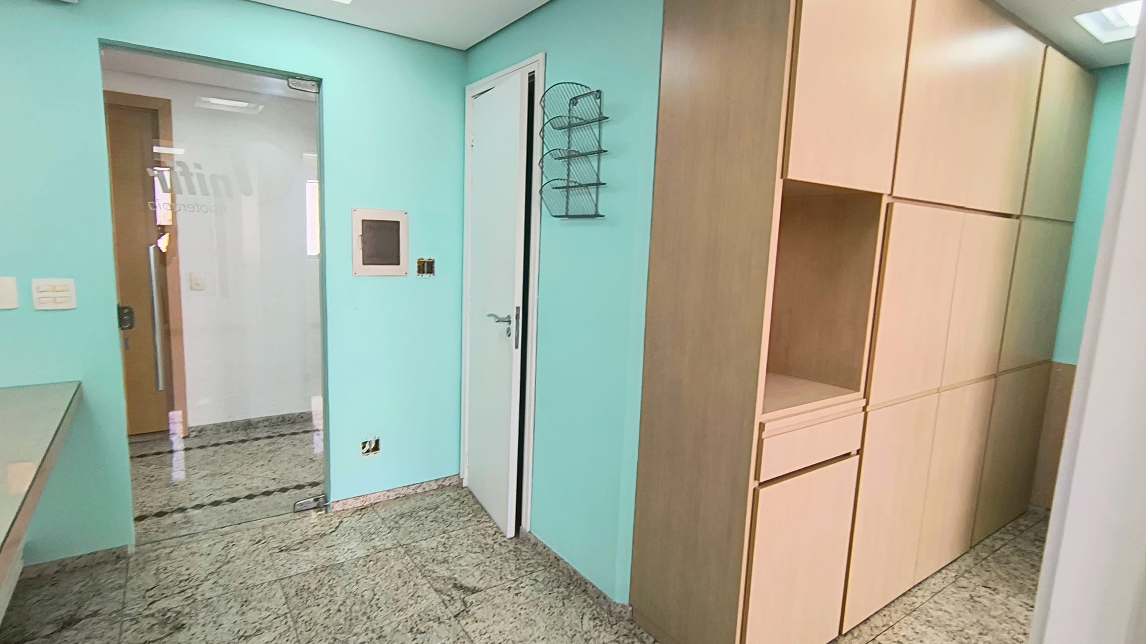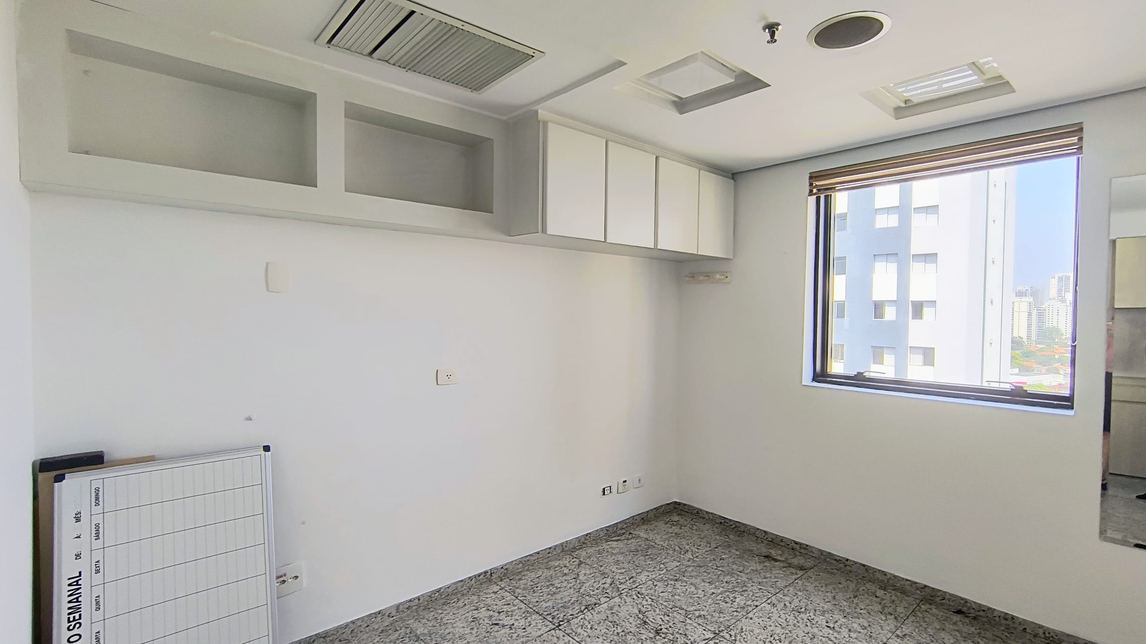 A sala em questão é extremamente funcional, contando com uma recepção, dois banheiros, armários planejados e um espaço reservado para copa e mais duas salas ambas com vista panorâmica. A iluminação natural é um dos pontos fortes, complementada pelo acabamento em piso de granito, forro de gesso com rede de sprinklers e luminárias embutidas, garantindo um ambiente agradável e seguro. E para maior comodidade, a sala ainda oferece duas vagas de garagem exclusivas, facilitando o acesso de clientes e colaboradores.