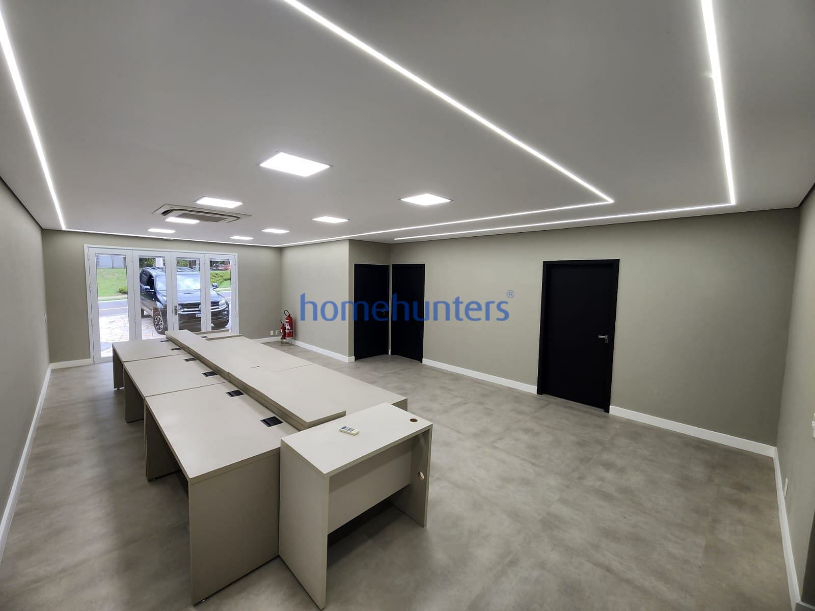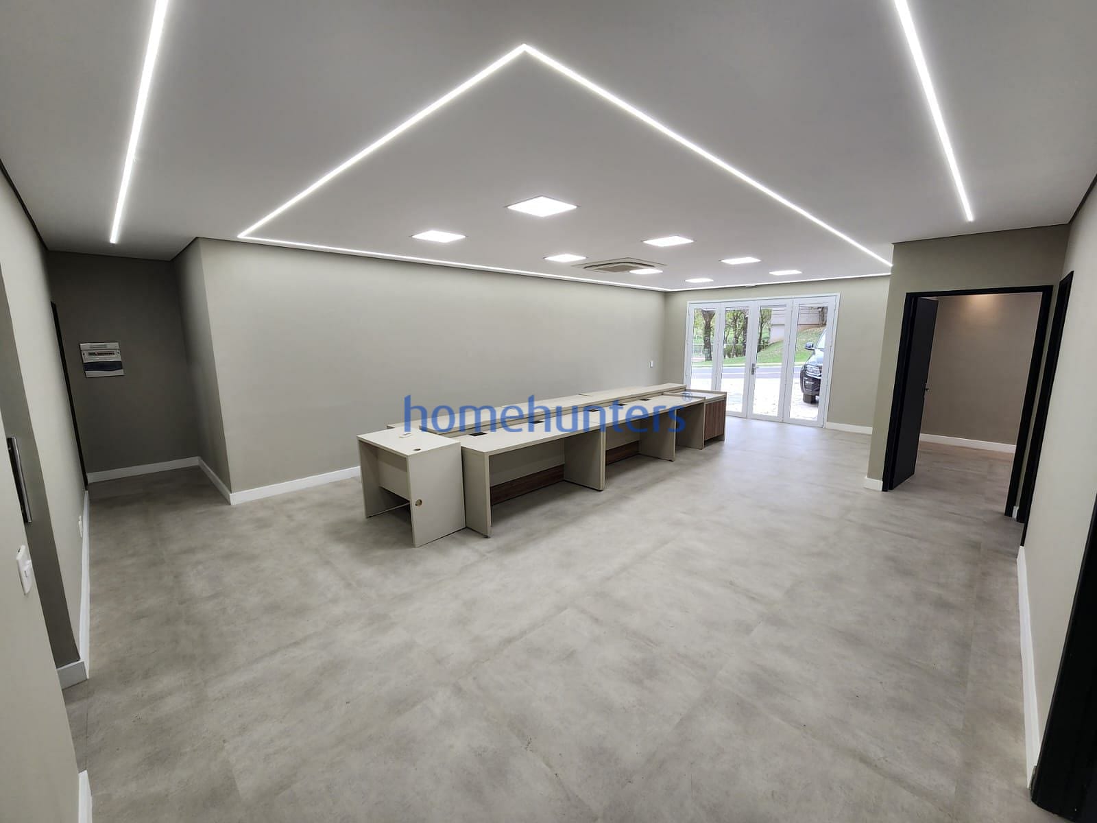 Composto de 1 copa, 2 banheiros, uma sala de reunião, 2 salas para diretores ou administração e uma sala como estação de trabalho.