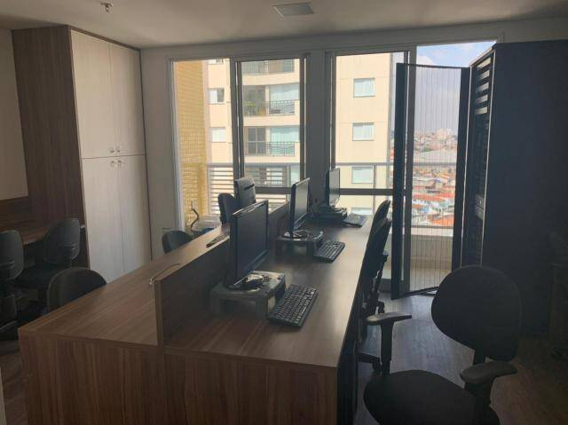 Sala comercial novíssima,35 m² uteis com terraço- com banheiro privativo, belo terraço, 02 vaga de garagem, portaria, segurança, prédio novo, sala mobiliada com estacão de trabalho, mesas cadeira, 02 ar condicionados, central telefônica e de câmeras- . Muito bem localizado, em frente a delegacia, ao lado do shopping Anália Franco e futura estação de metrô, condução na porta.