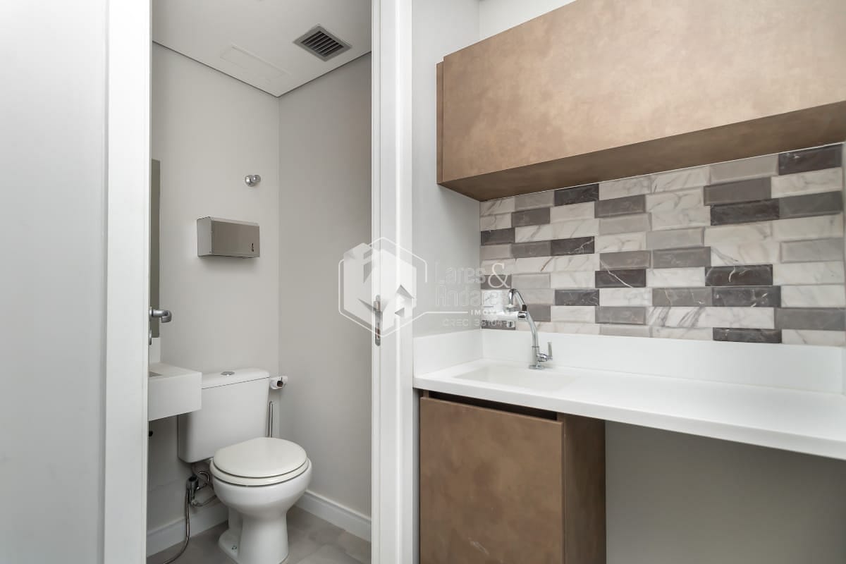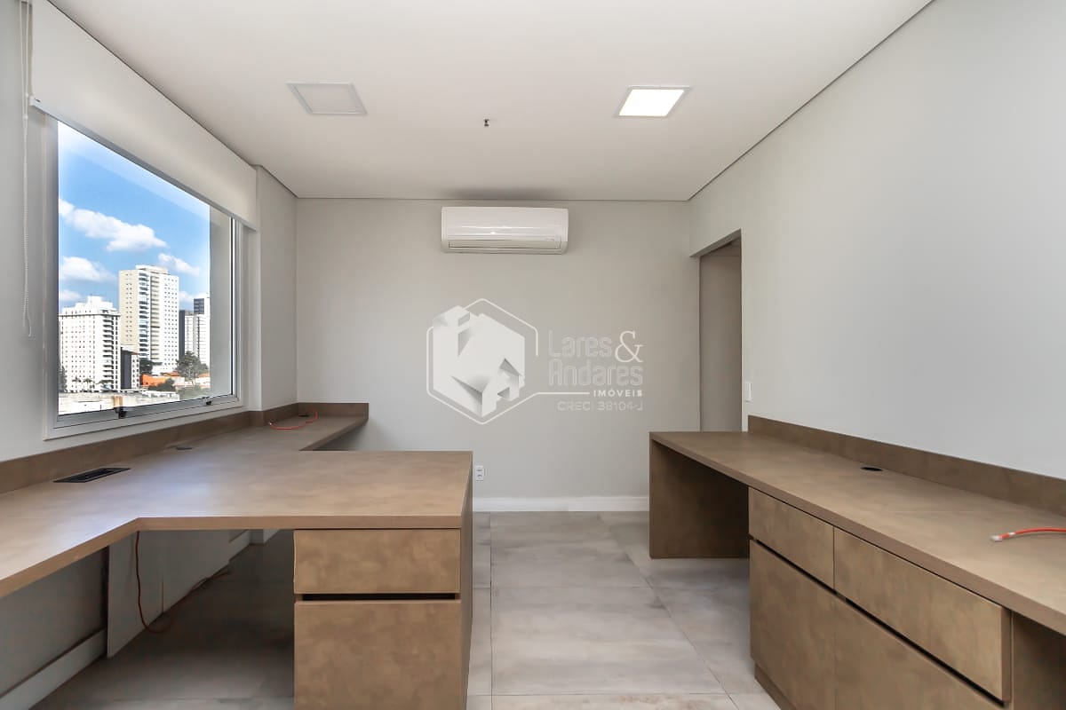 Sala comercial com 38 m², dividida em 2 ambientes, reformada e equipada com ar-condicionado split nas 2 salas, 1 banheiro e encanamento para mais um. Possui 1 vaga de garagem com serviço de manobrista, oferecendo mais comodidade.