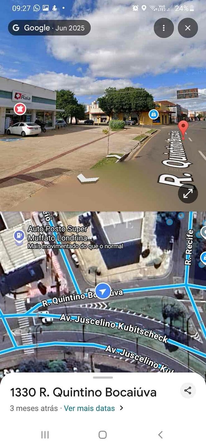 Em frente à Farmácia Drogamais , entre a Avenida Tiradentes e a Avenida Juscelino Kubitschek dois dos principais eixos comerciais de Londrina.