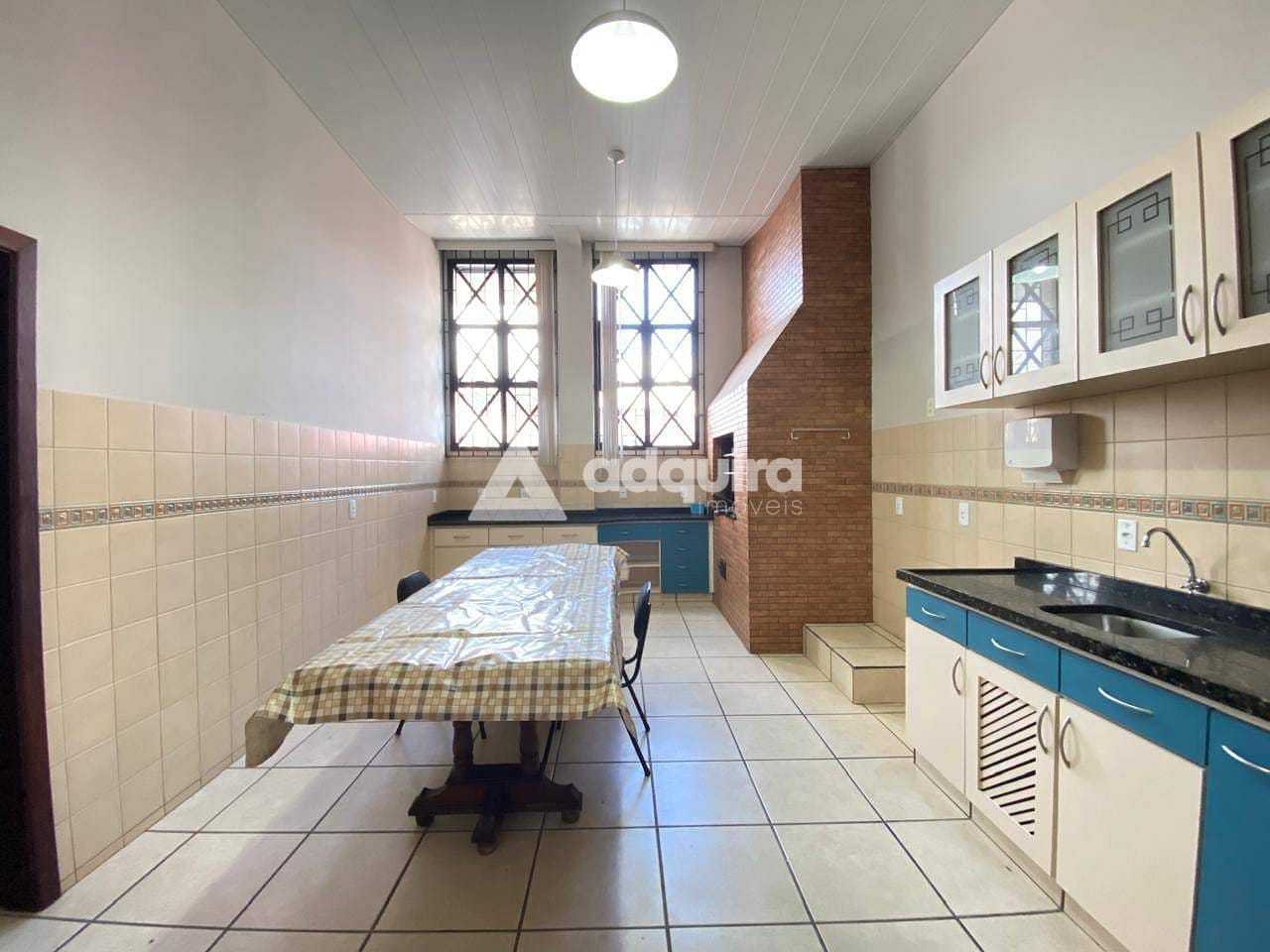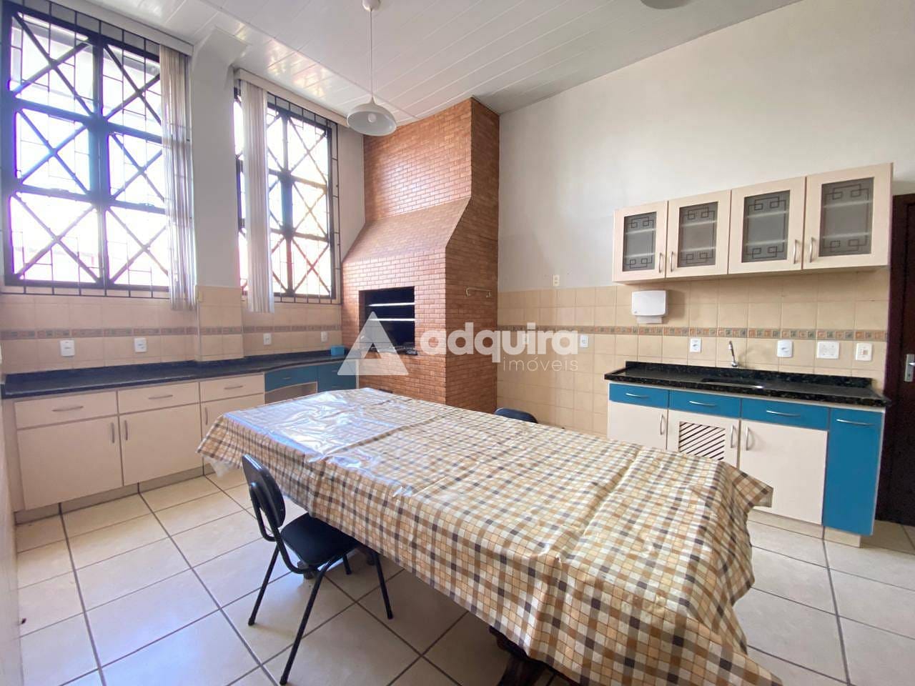 Sala ampla com cozinha, churrasqueira e despensa