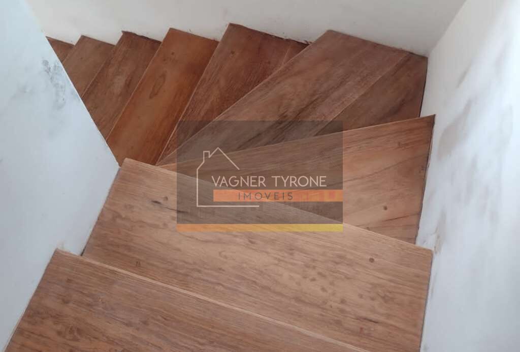 •Escadas de alvenaria revestida em madeira envernizada, com espaço para armário / despensa em baixo.