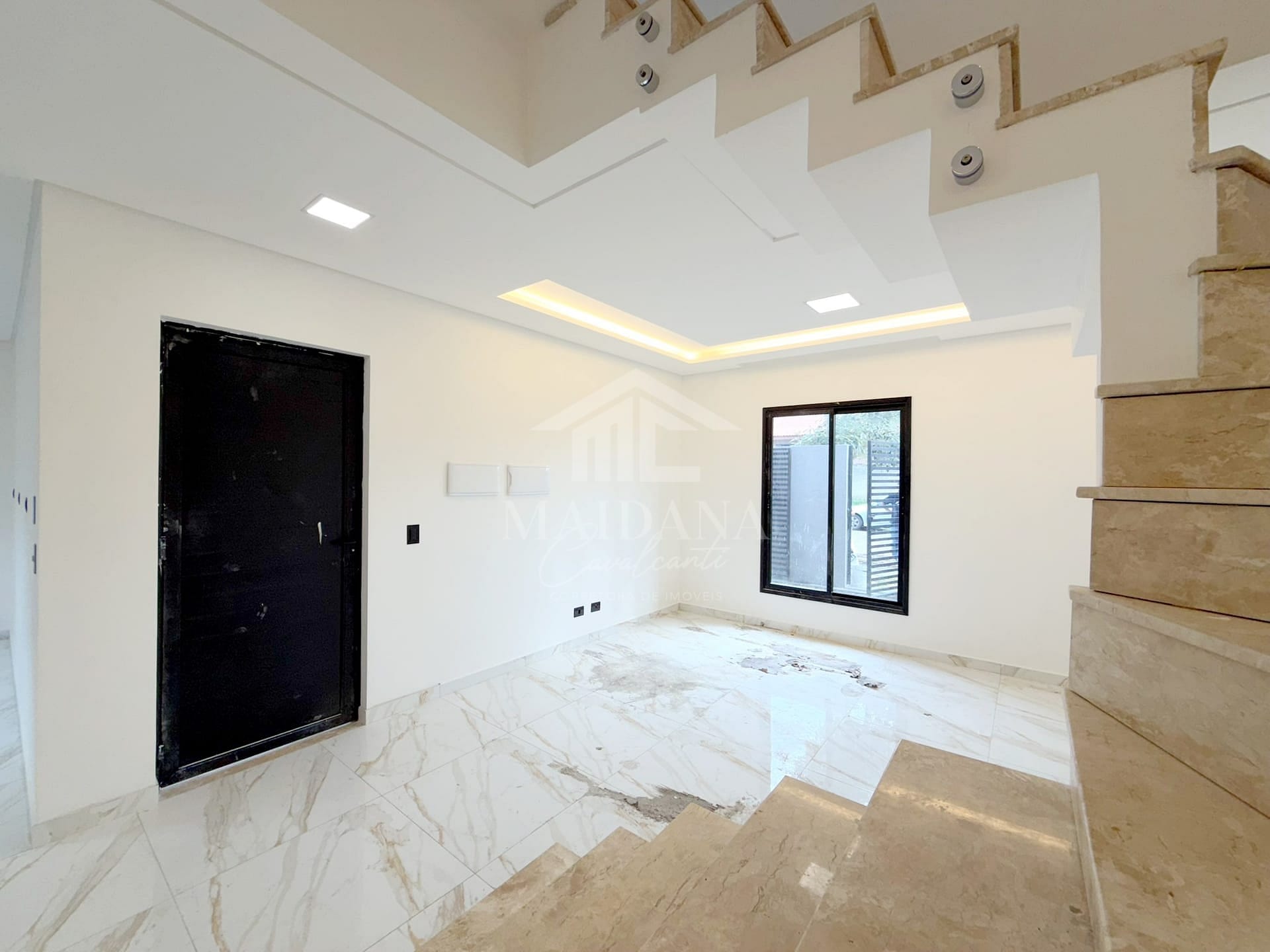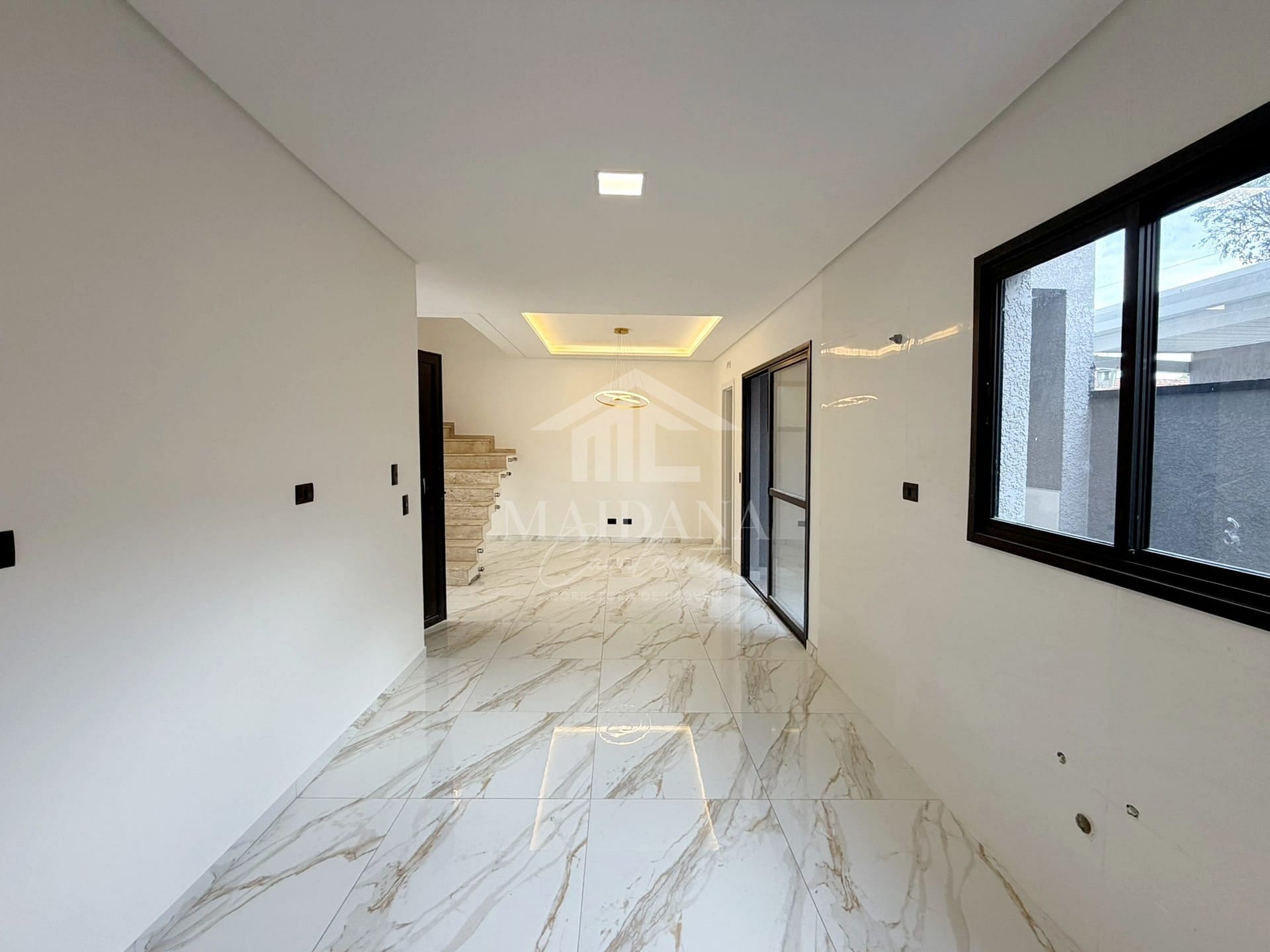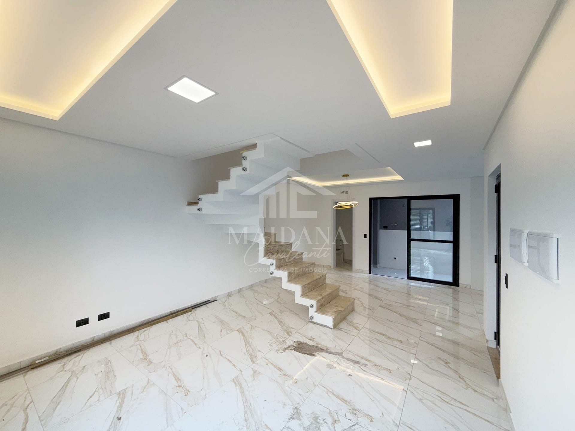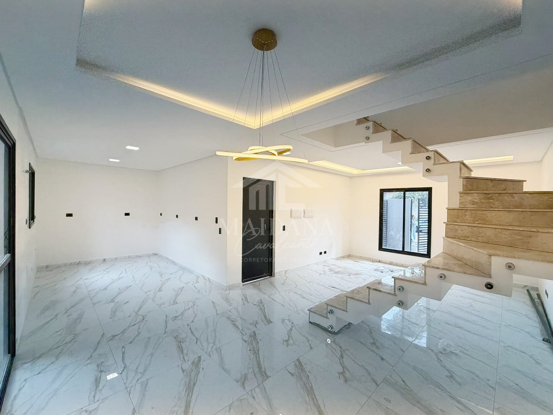 - Teto rebaixado em gesso com iluminação em LED e lustre