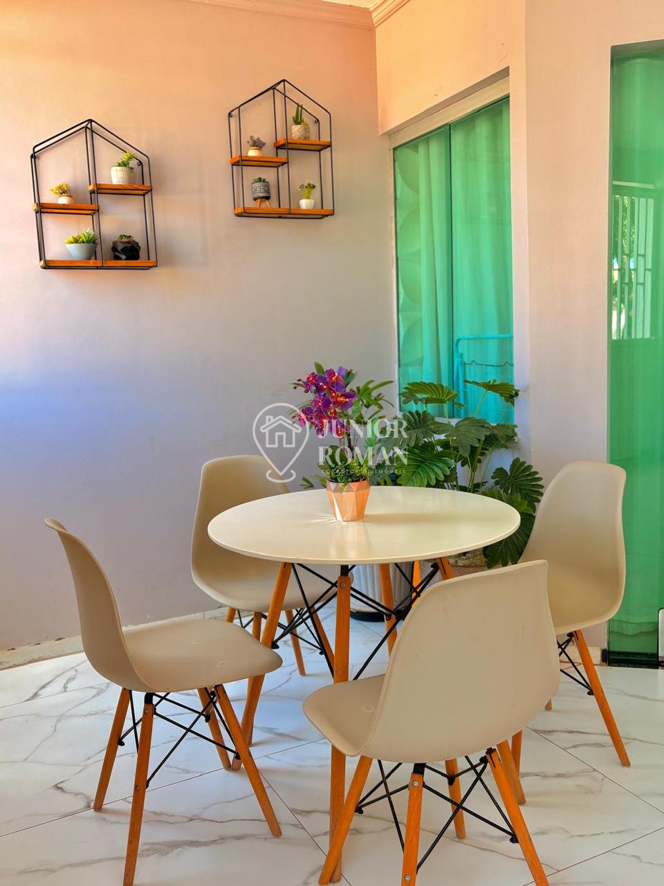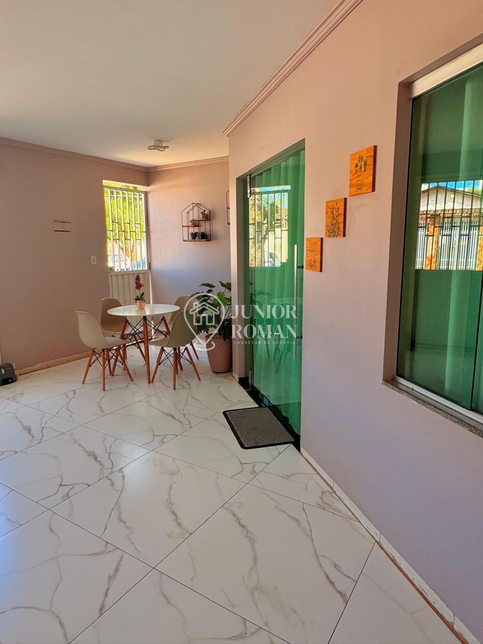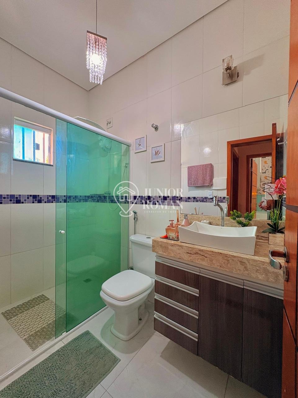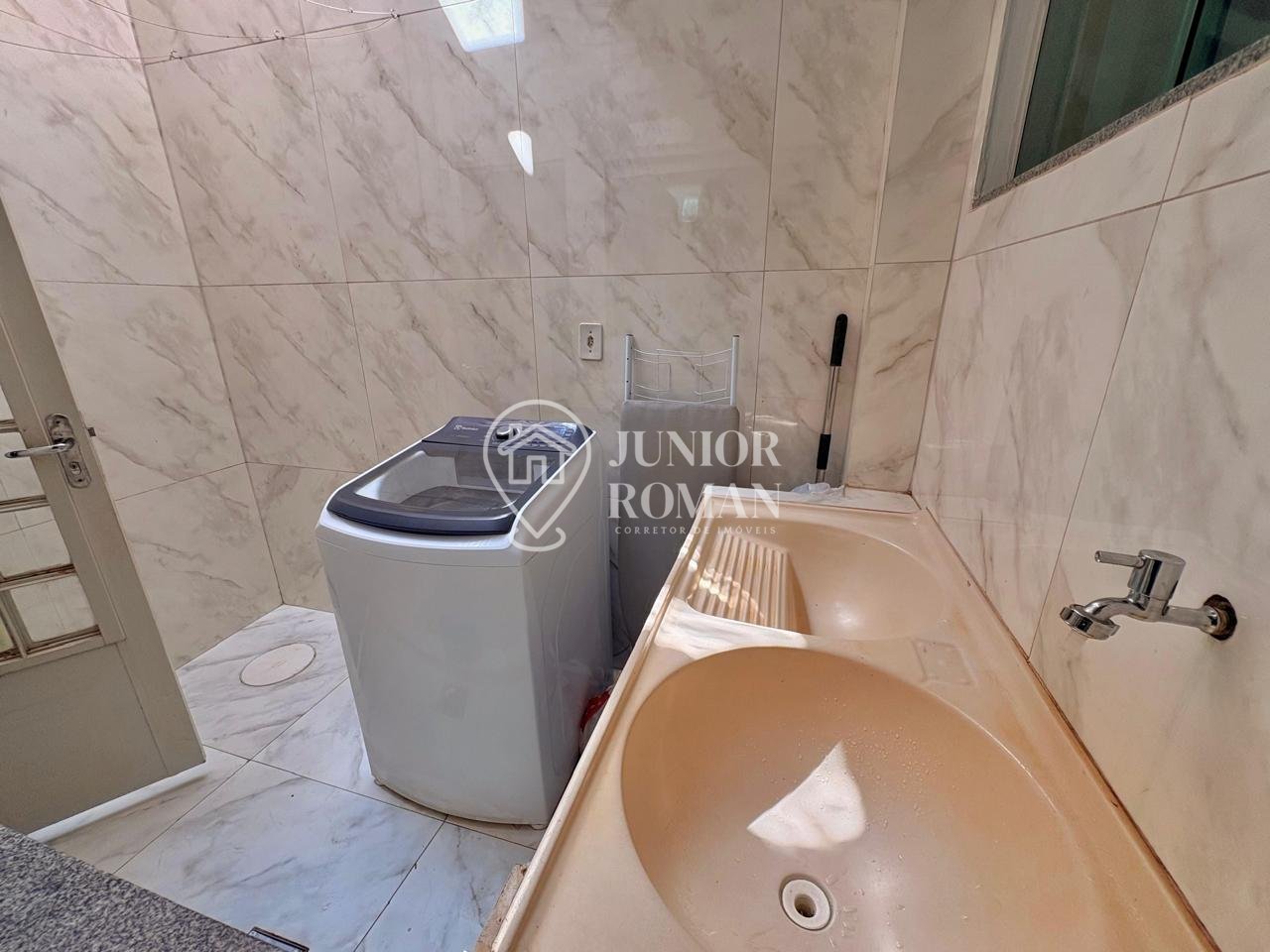 Sala ampla, bem iluminada, com lavabo
