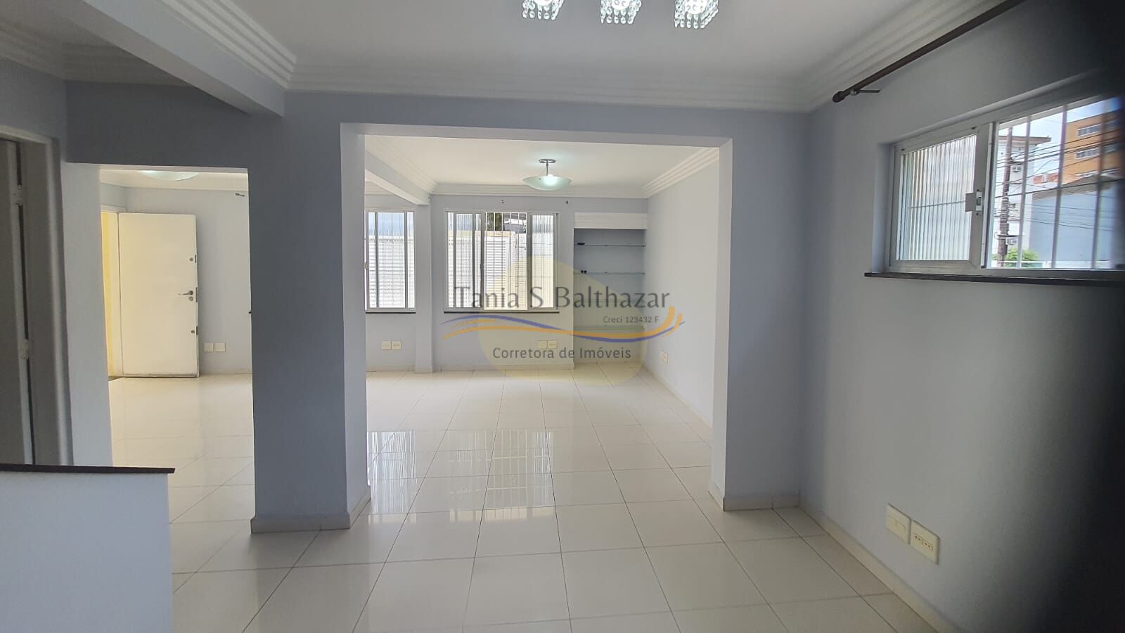Piso térreo: sala para 3 ambientes, cozinha, área de serviço e banheiro.