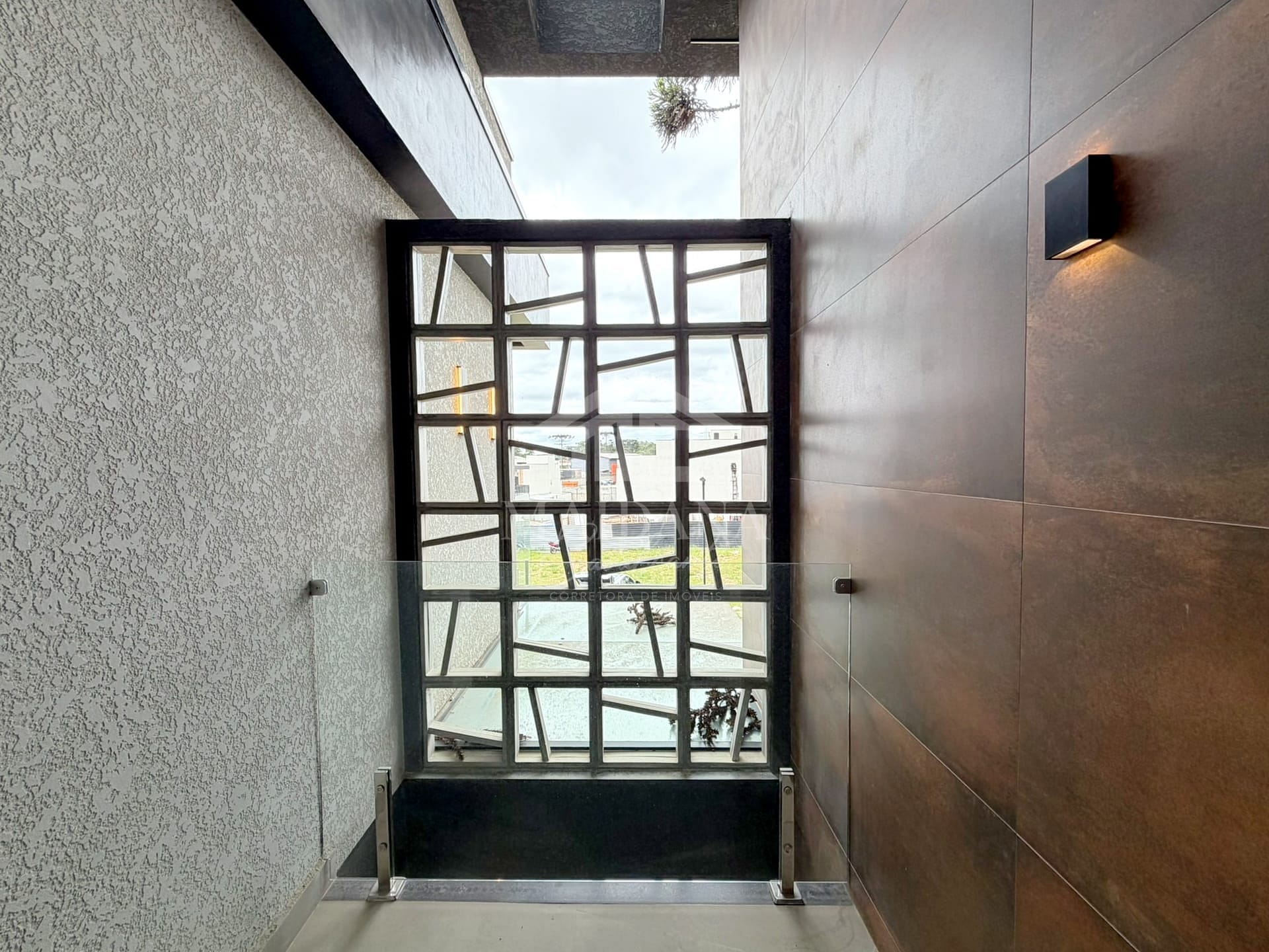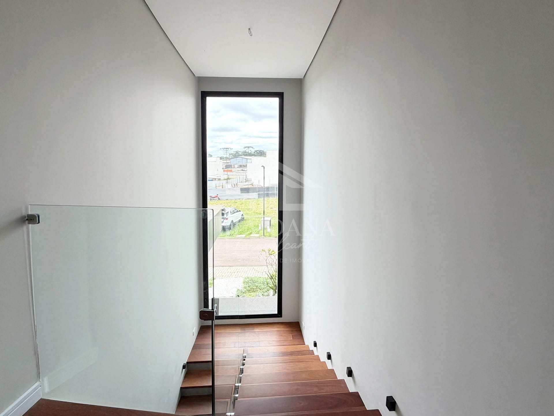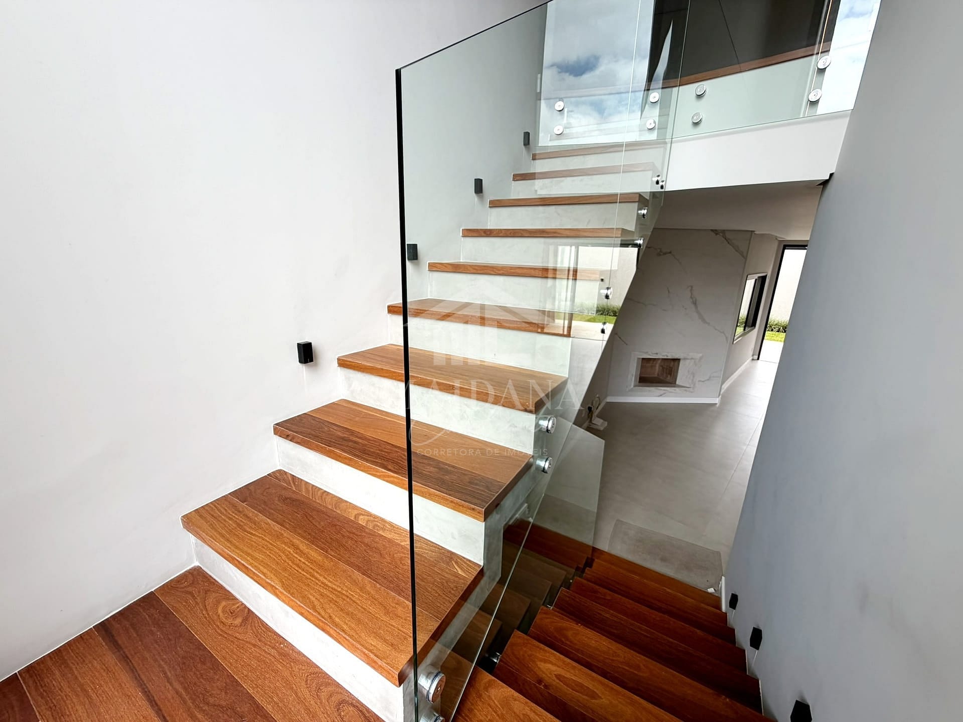 - Escada com acabamento em madeira maciça