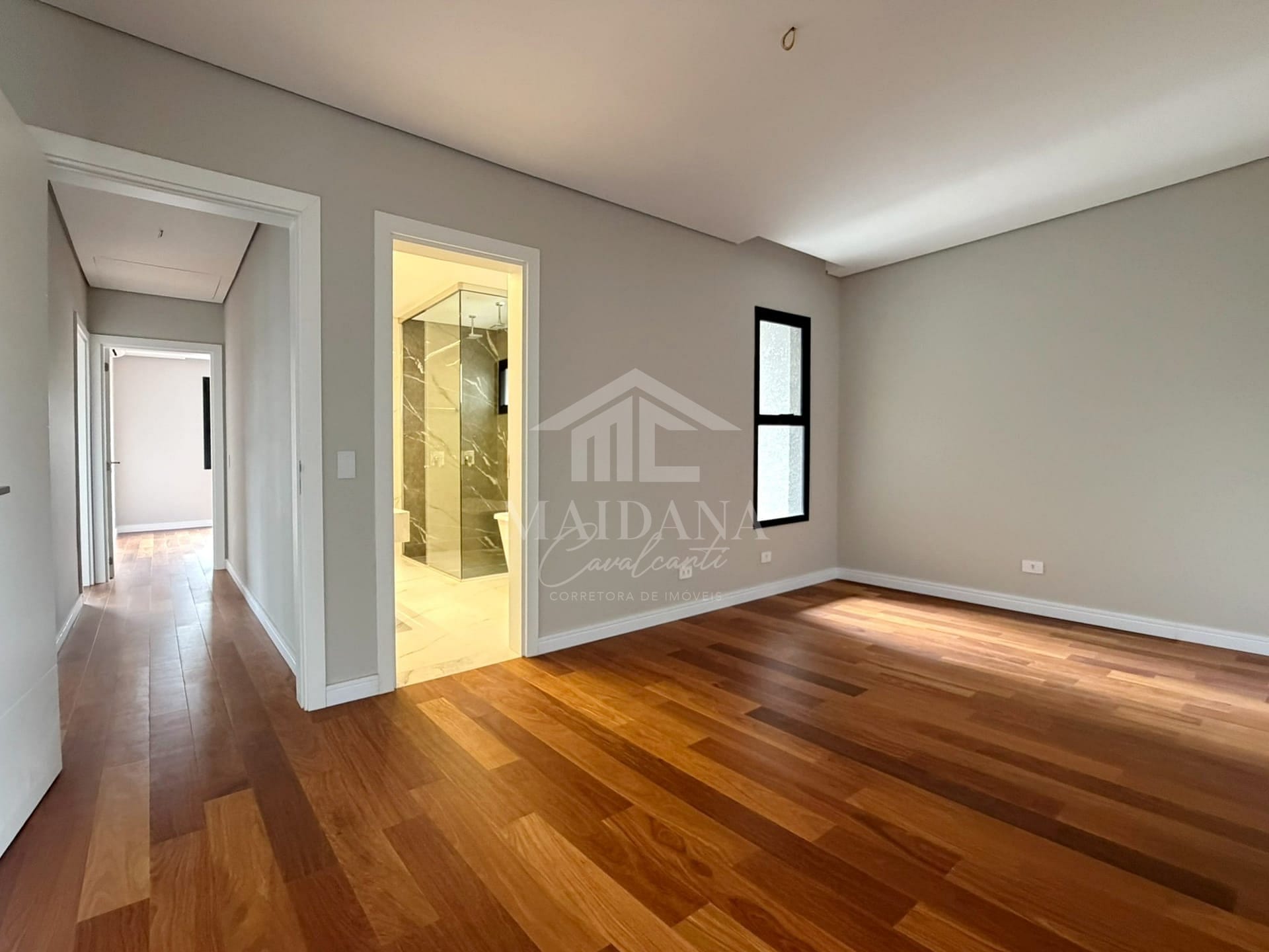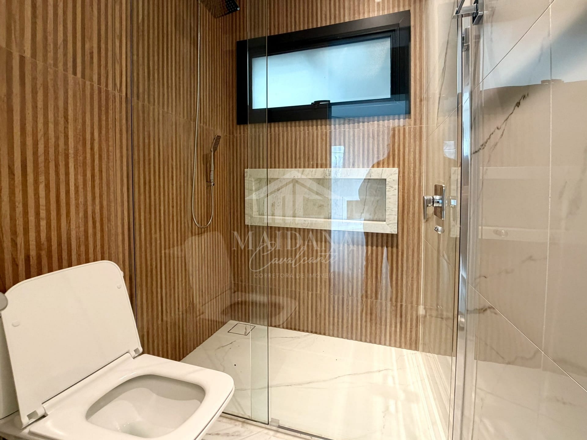 - Porcelanato premium e piso superior em madeira natural