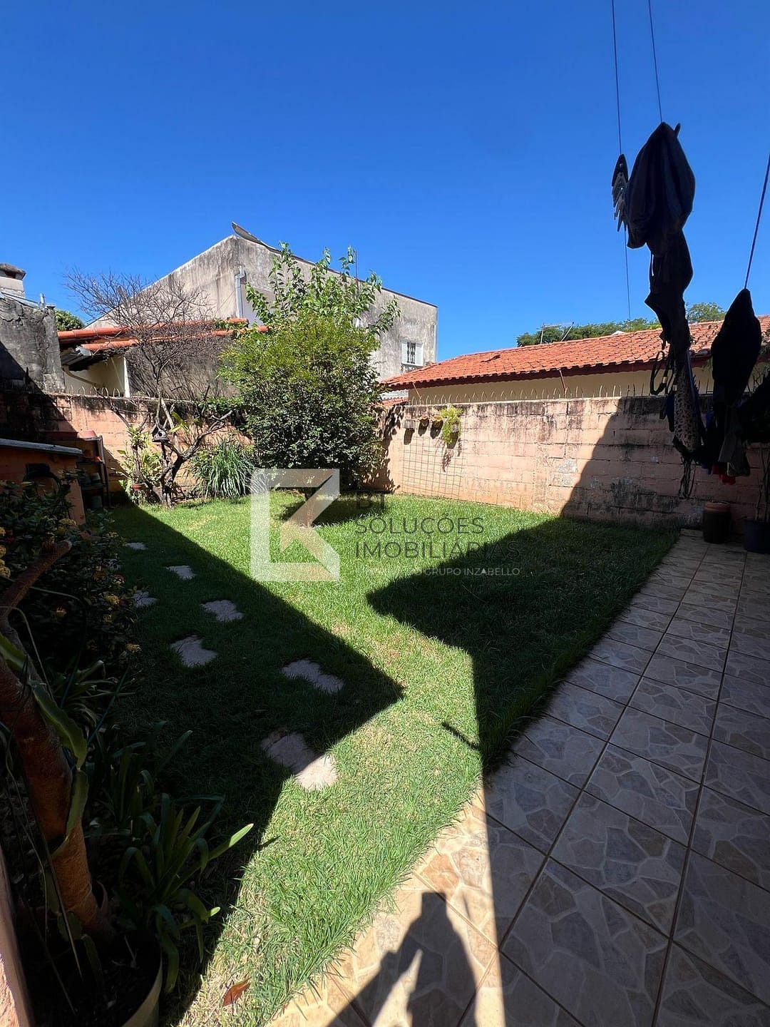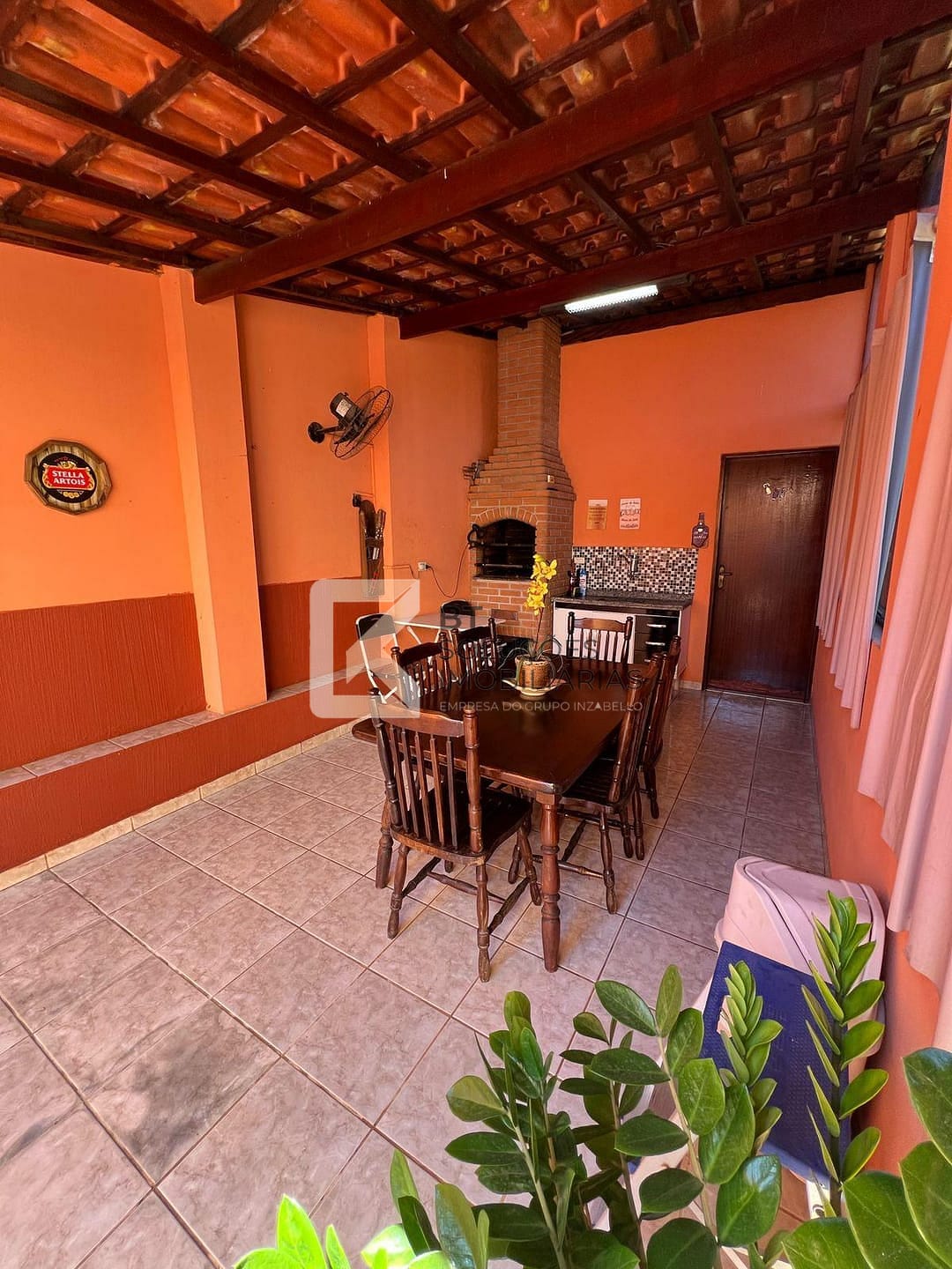- Área gourmet com churrasqueira e quintal com gramado.