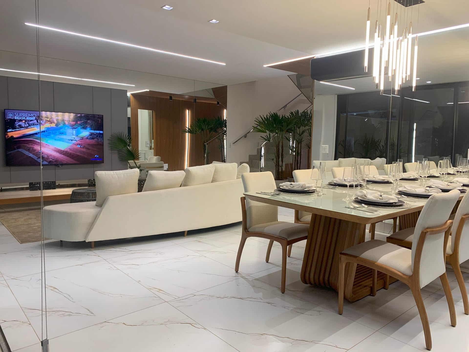 Sobrado com 03 suítes, sendo 01 master com varanda, mais 02 suítes plenas no piso superior, e mais lavabo, sala ampla integrada à cozinha, quintal com 60,70 m² e 02 vagas de garagem no piso inferior.