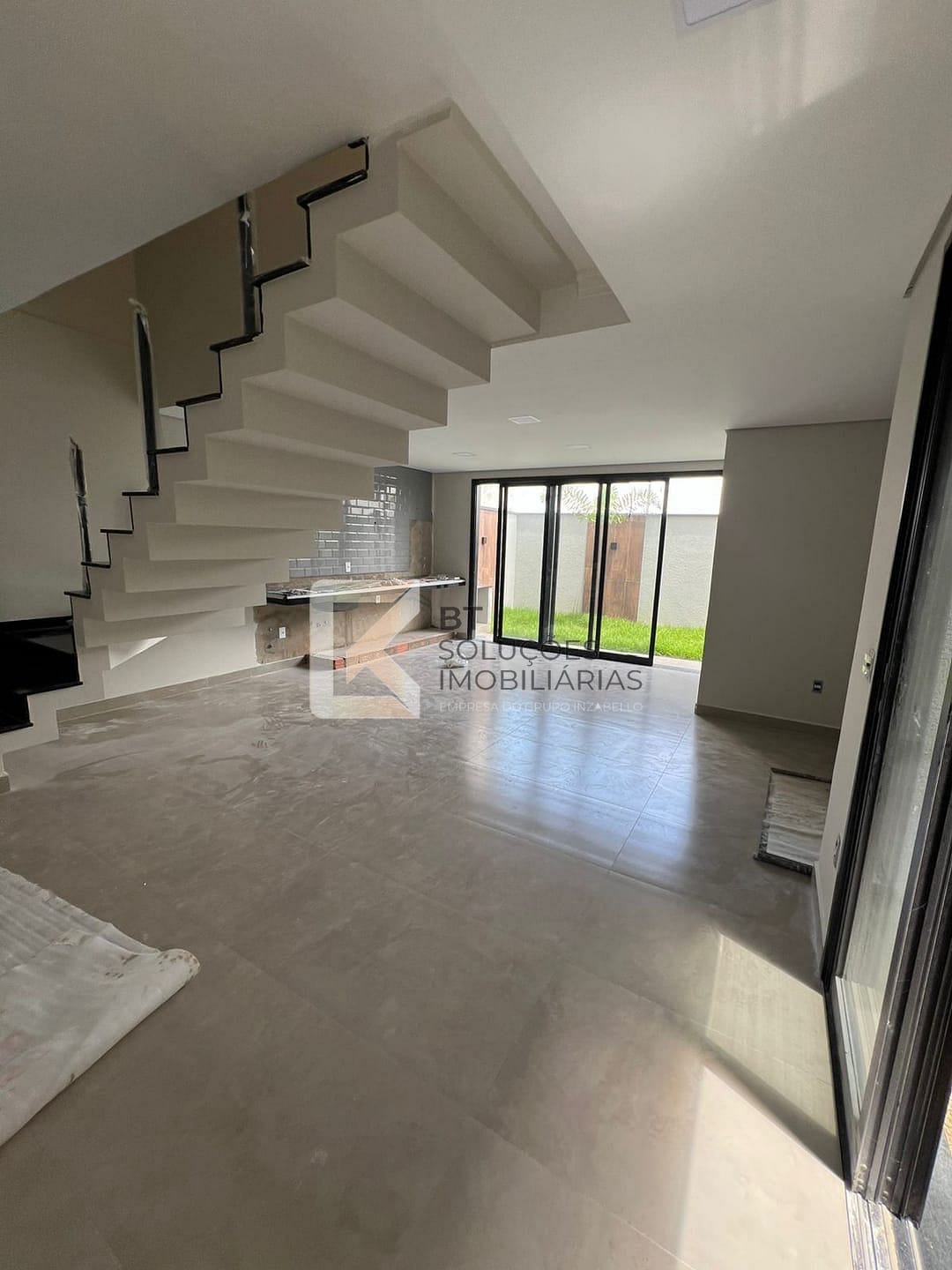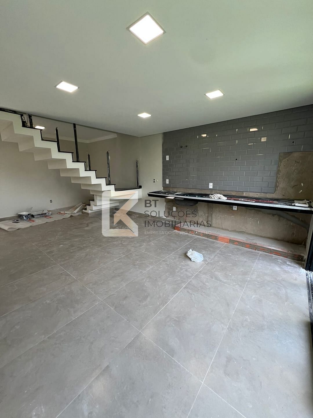 - Área gourmet no piso inferior com balcão de granito e móveis planejados.