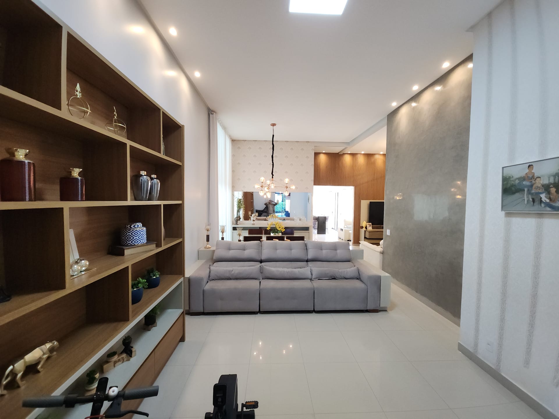 Sala ampla de estar e jantar com pé-direito duplo (5,5m)
