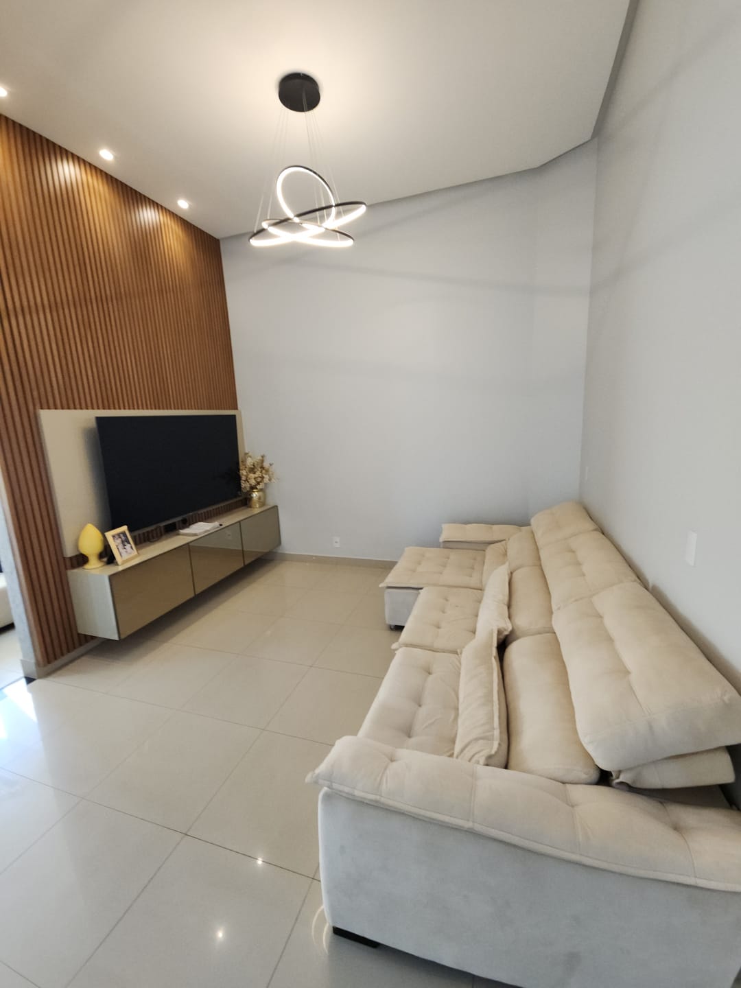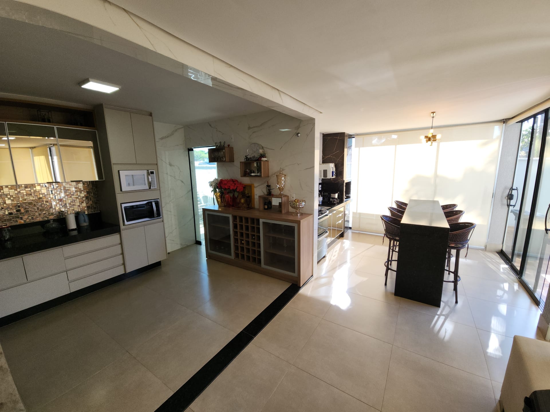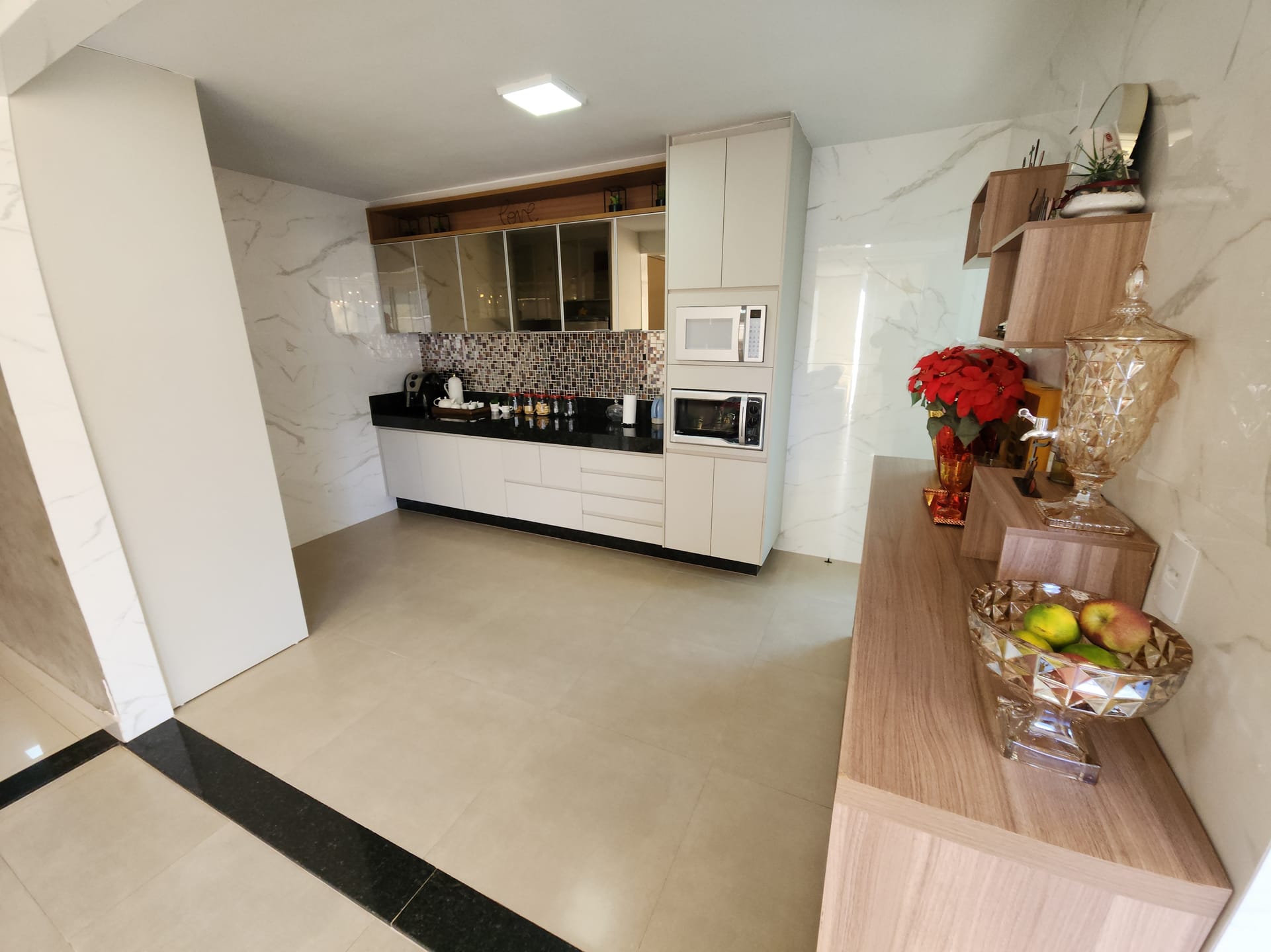 Rica em armários planejados e iluminação moderna