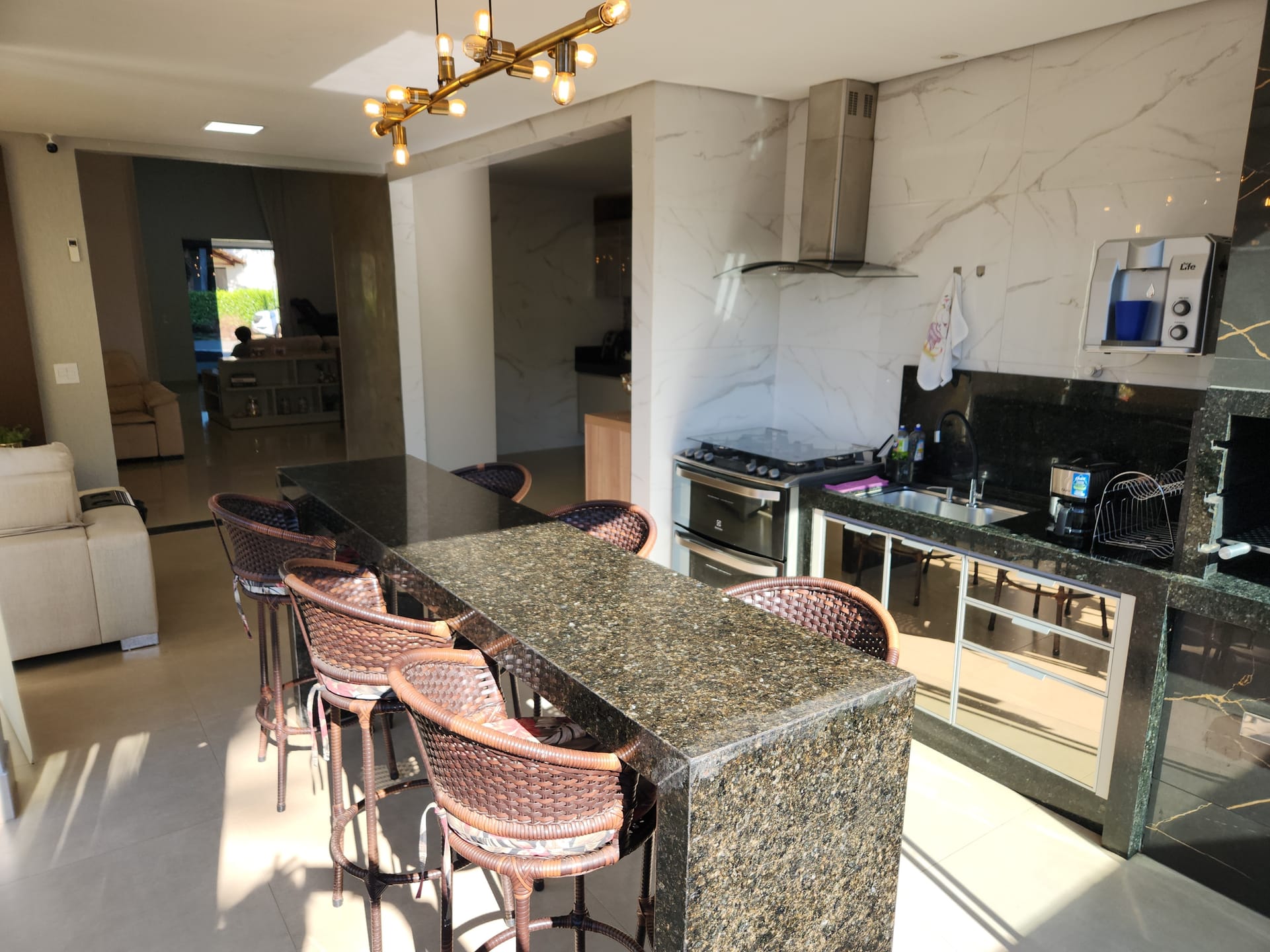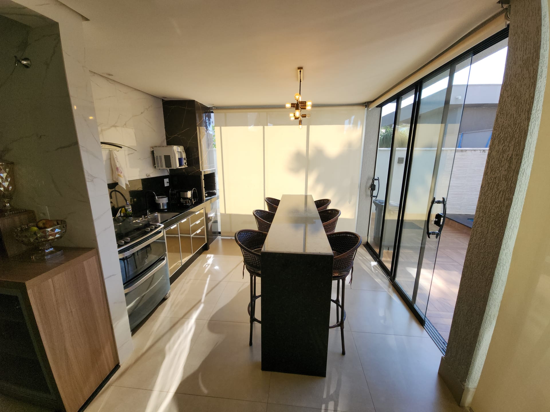Cozinha completa e área gourmet com churrasqueira