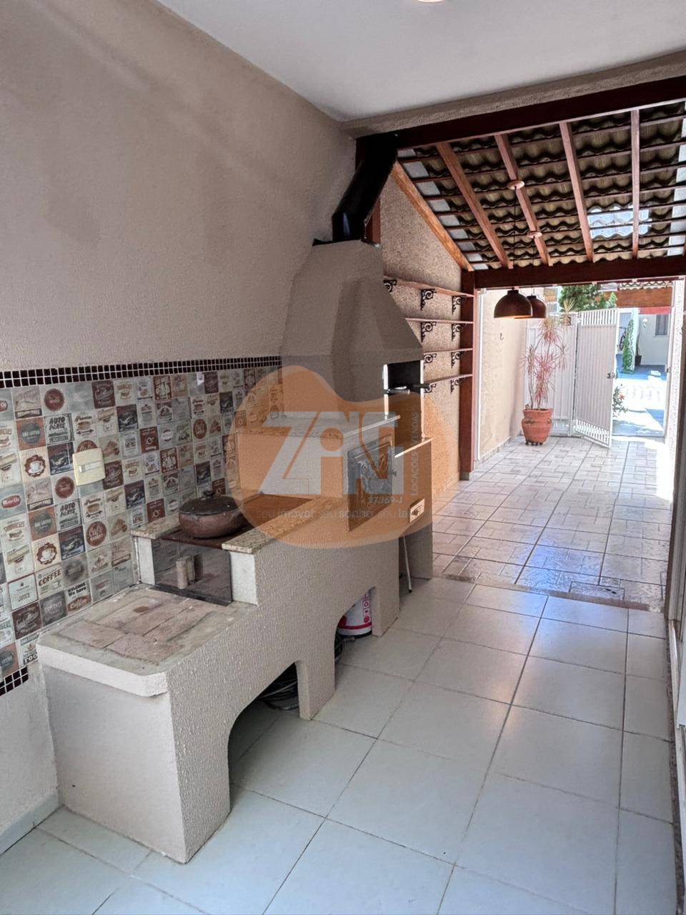 - área gourmet com churrasqueira, forno e fogão a lenha.
