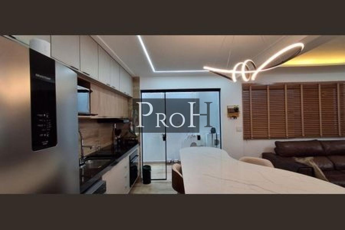 Na área social, a sala espaçosa proporciona um ambiente ideal para reunir a família e receber visitas. A cozinha conta com armários planejados e acabamentos de qualidade, integrada a uma área de serviço funcional também equipada com armários. O sobrado possui ainda duas vagas de garagem, oferecendo comodidade e segurança.