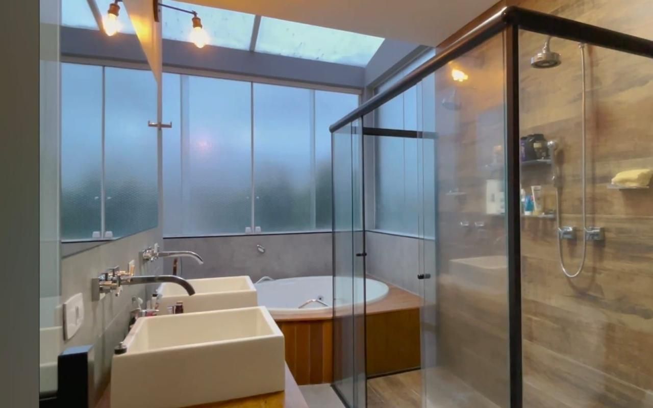 Suíte master com banheiro completo (banheira e dois chuveiros)
