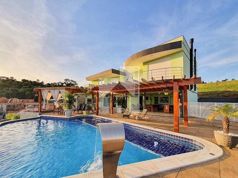 SOBRADO COM CARA DE RESORT E VISTA PERMANENTE PARA O LAGO E PARA SERRA DO JAPI
