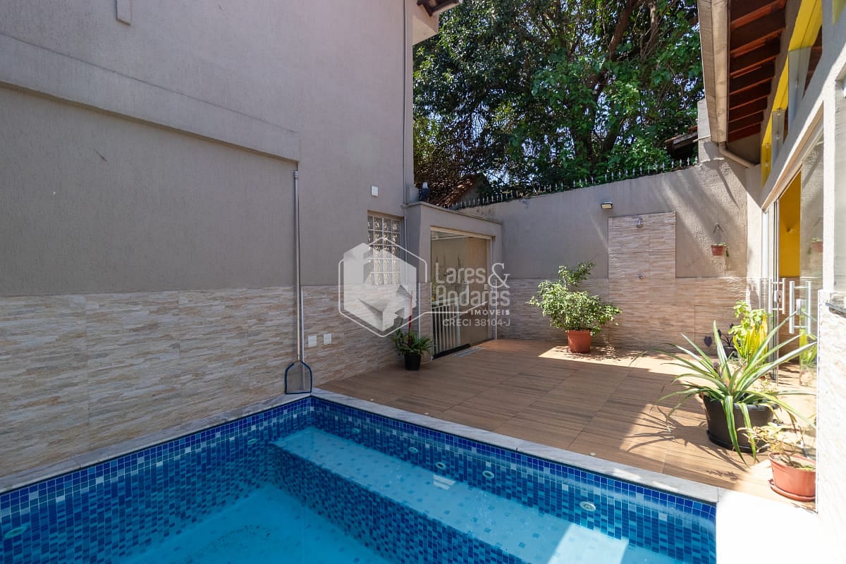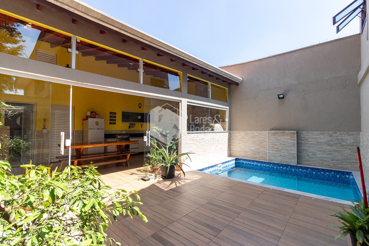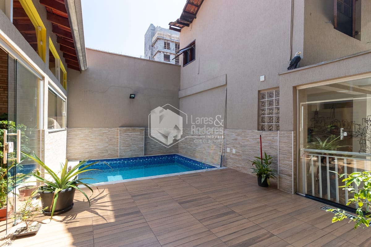 Na parte externa, o sobrado entrega aquilo que toda família procura: um verdadeiro refúgio dentro de casa. A área de lazer é composta por uma piscina, perfeita para os dias quentes, e um espaço gourmet amplo e completo, equipado com churrasqueira e forno à lenha o cenário ideal para encontros especiais e celebrações inesquecíveis. O imóvel ainda disponibiliza 2 vagas de garagem, uma área grande de depósito e um banheiro exclusivo para atender à área de lazer.