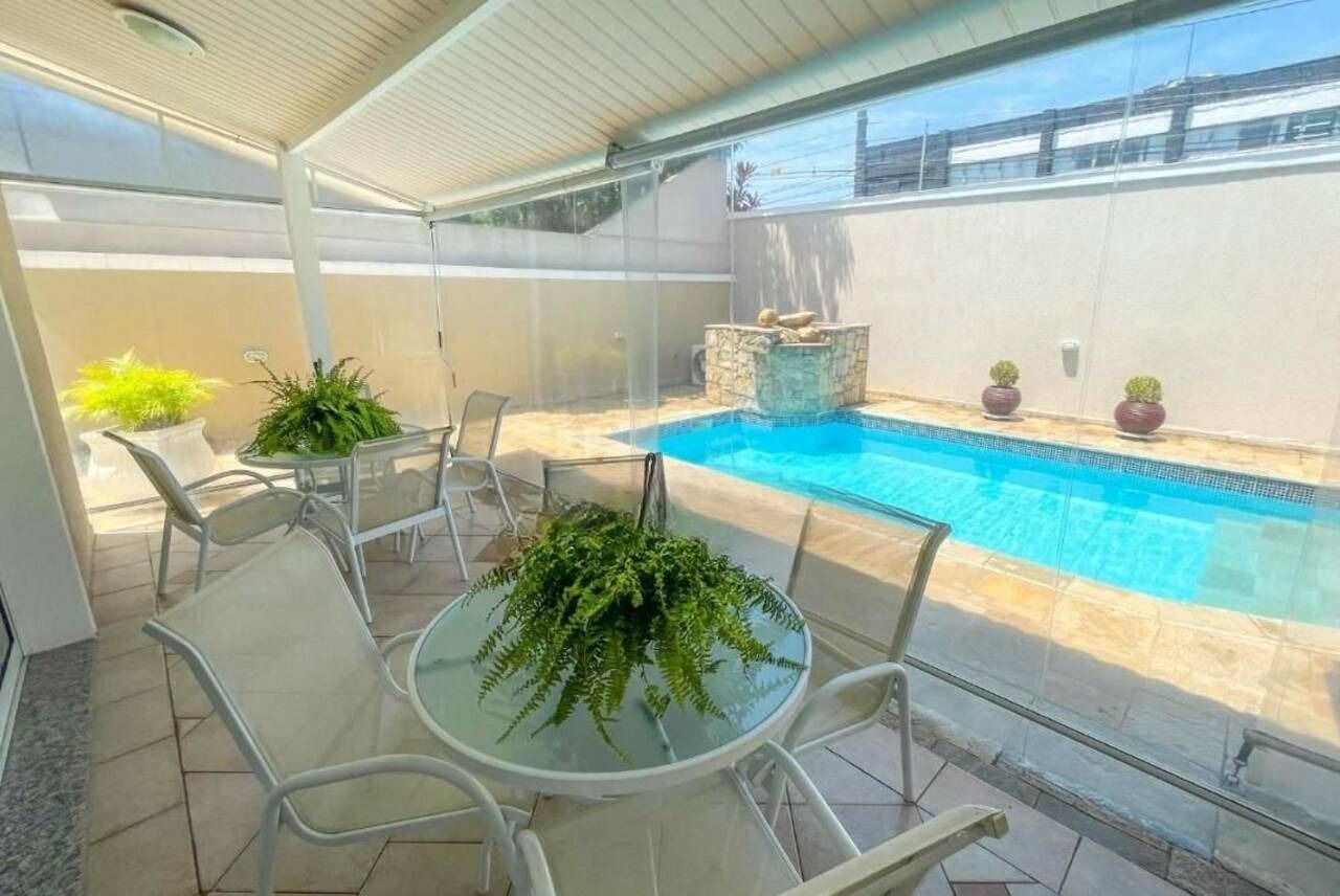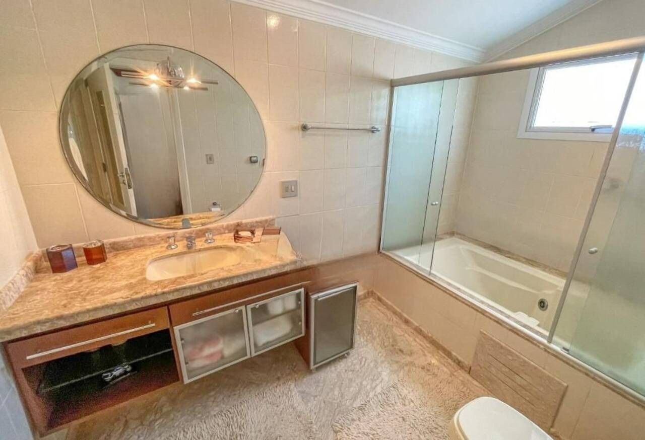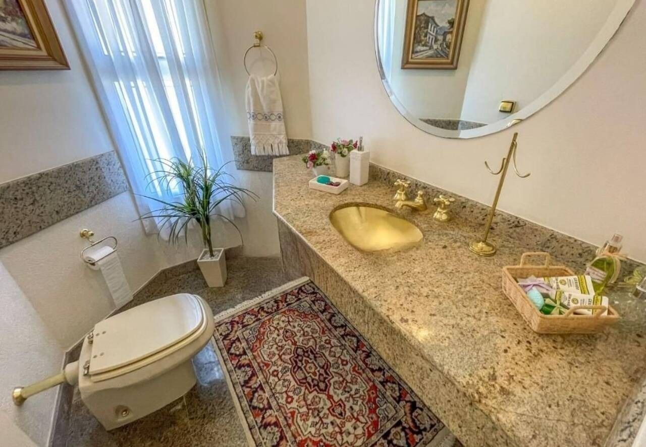 Possui 4 suítes e total de 7 banheiros (lavabo, piscina e empregados). Muito bem conservada, clássica. Todos os ambientes com ar condicionado inverter Fujitsu. Piscina com cascata e aquecedor elétrico Heliotec.