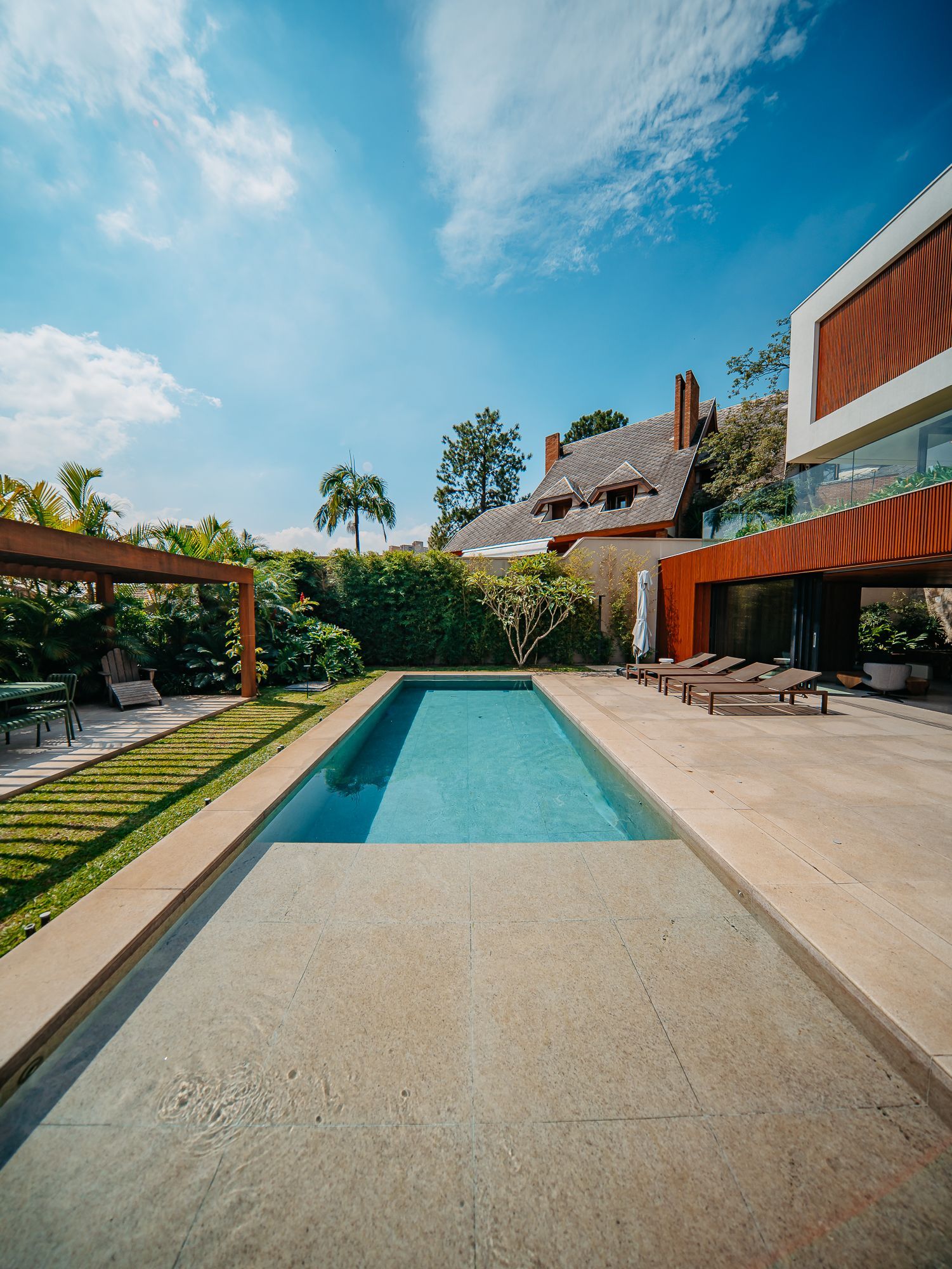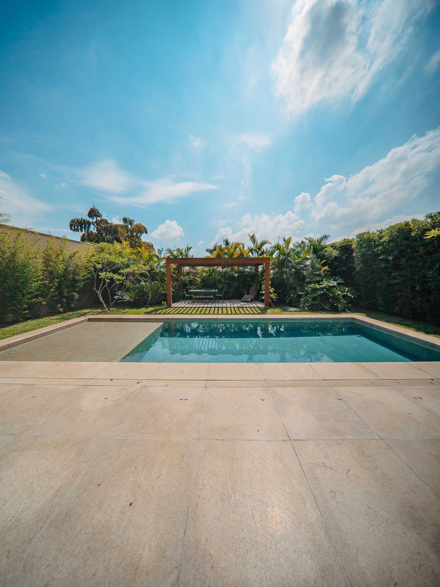 Piscina com prainha de 35m², aquecimento solar e a gás