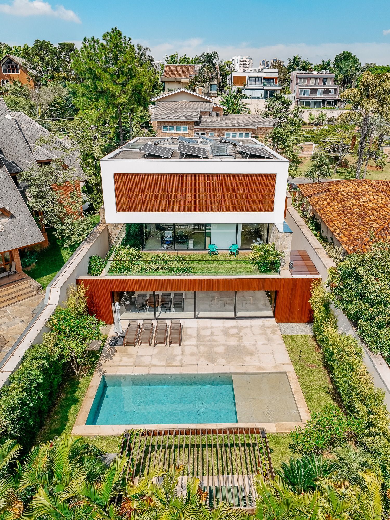 Essa moderna casa, situada em um condomínio fechado bem localizado em Alphaville e com completa estrutura de lazer, é um exemplo excepcional da fusão entre a arquitetura contemporânea de Guilherme Torres e o paisagismo de Gilberto Elkis. Com um terreno de 682m² e 615,32m² de área construída, o projeto prioriza não apenas a estética, mas também a funcionalidade, o conforto e a sustentabilidade. Todos os ambientes são abundantemente iluminados pela luz natural, promovendo uma conexão harmoniosa com a natureza, que se estende tanto para o exterior quanto para o interior, utilizando elementos naturais como pedra e madeira. A deslumbrante piscina com prainha de 35m² se integra a uma área externa de 232m², criando um espaço ideal para desconectar-se e relaxar. A casa também conta com quatro amplas suítes, um escritório e um living integrado que une os ambientes de estar e jantar, oferecendo um lar acolhedor e sofisticado para seus moradores.