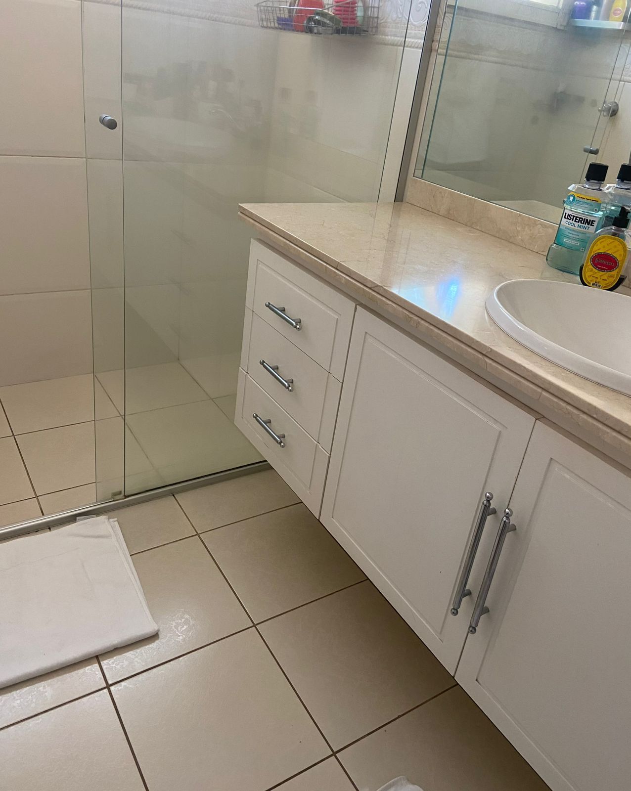 Piso das áreas comuns em crema marfil.