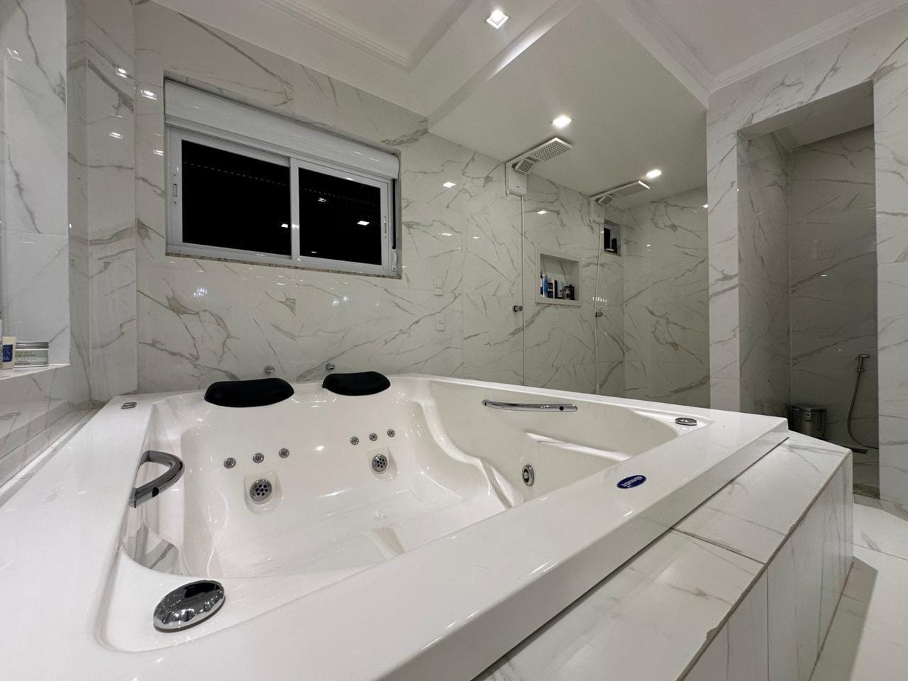 Suítes amplas, sendo a master com banheira e closet
