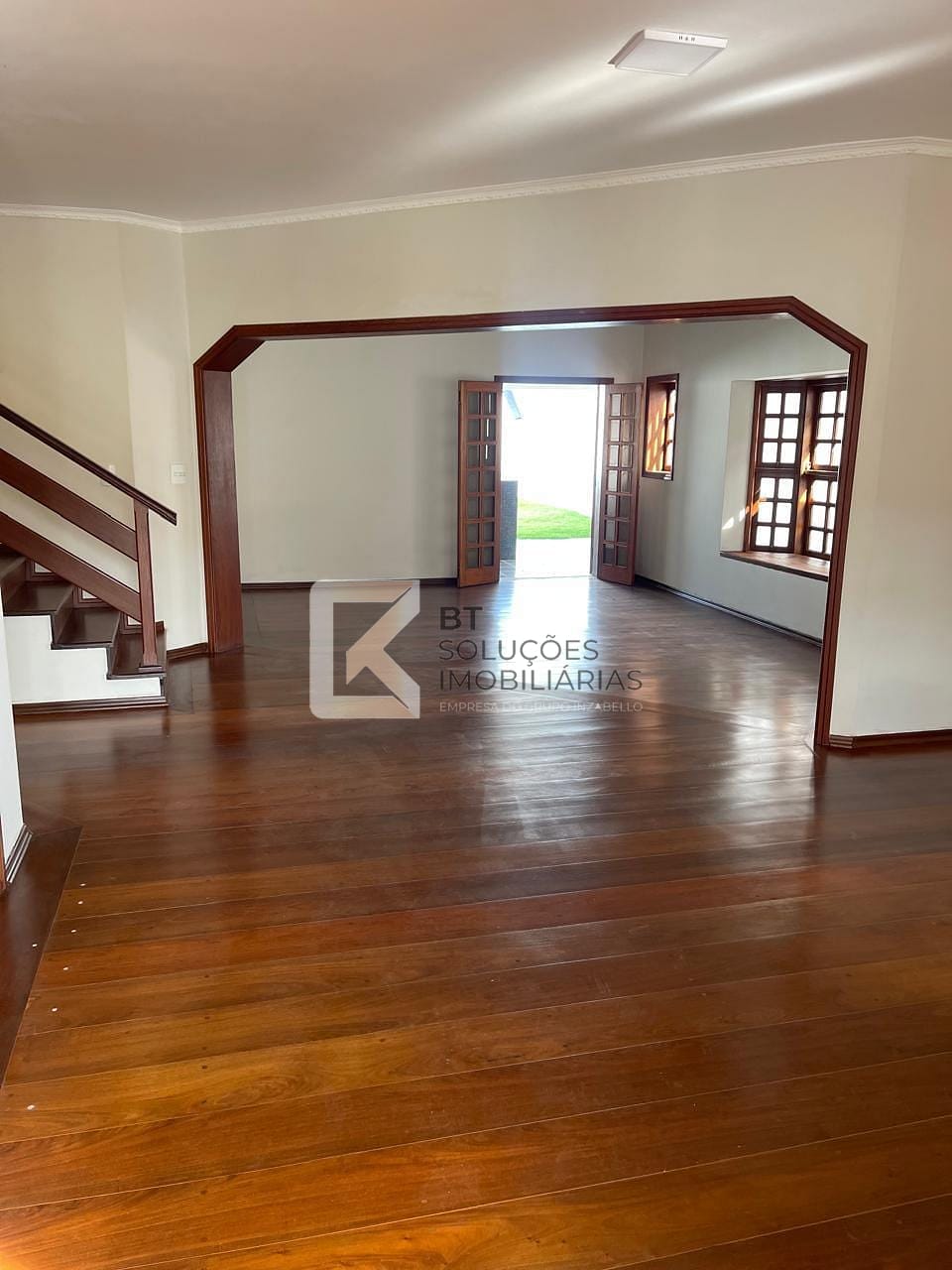 3 Salas amplas com piso de madeira larga