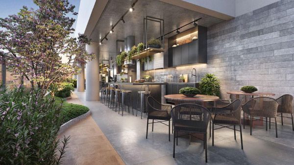 Pet place, salão de festas, espaço gourmet, playground e espaço delivery/mini‑mercado,