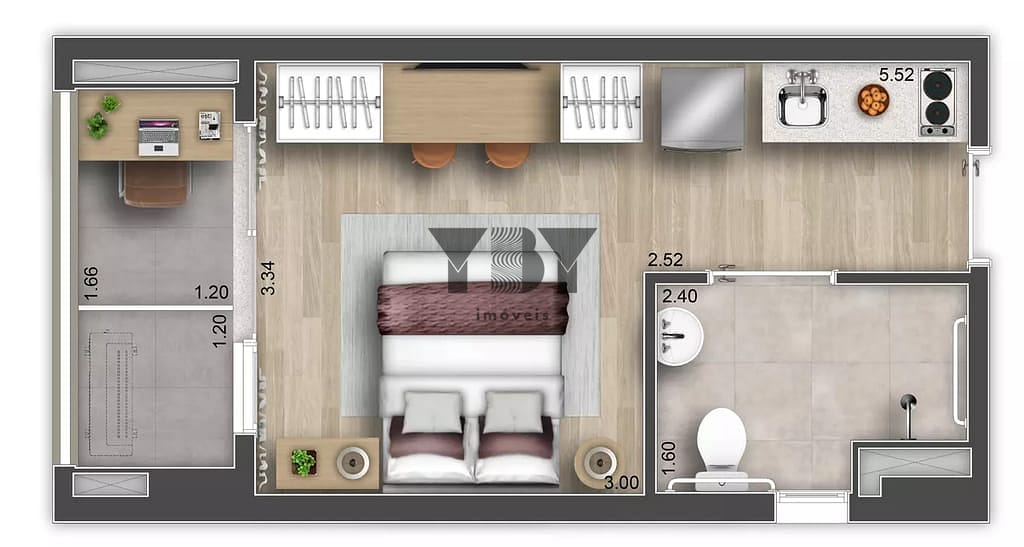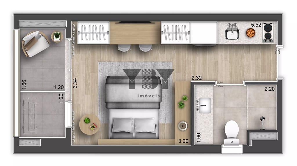 Studio à Venda com 1 quartos, 26 m² por R$ 367.108