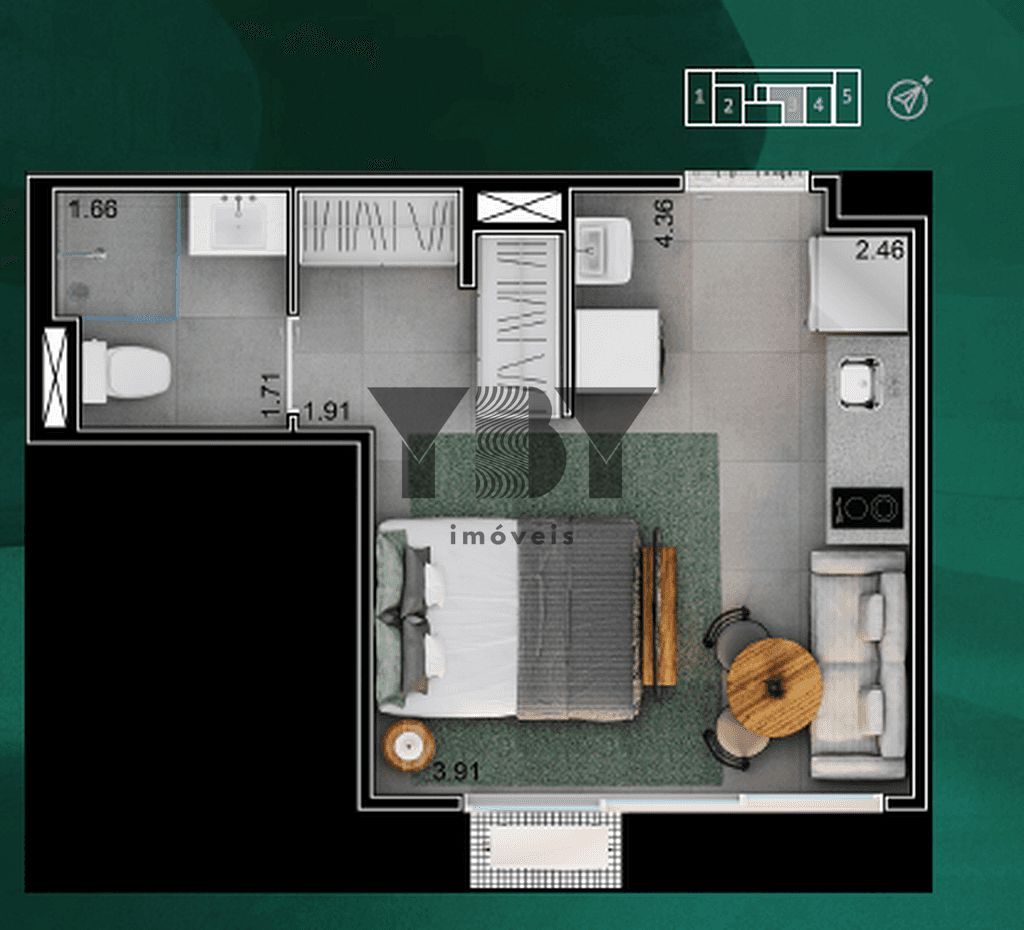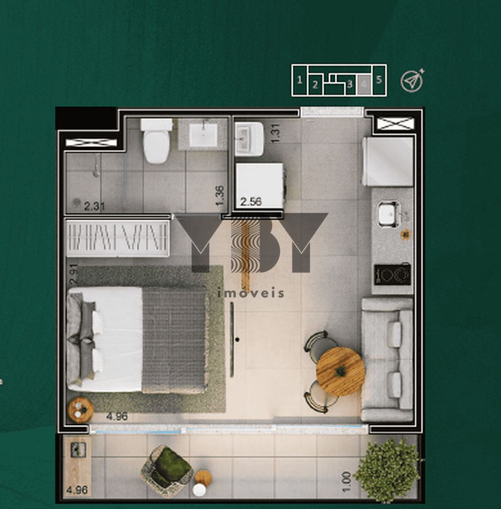 Studio à Venda com 1 quartos, 25 m² por R$ 461.381