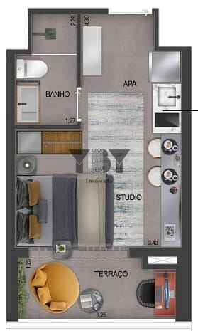 Studio à Venda com 1 quartos, 22 m² por R$ 401.692