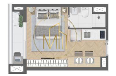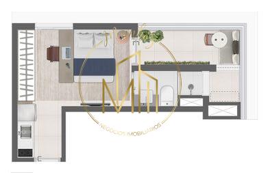 Studio à Venda com 1 quartos, 22 m² por R$ 444.125