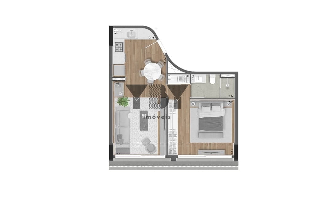 Studio à Venda com 1 quartos, 34 m² por R$ 1.079.595